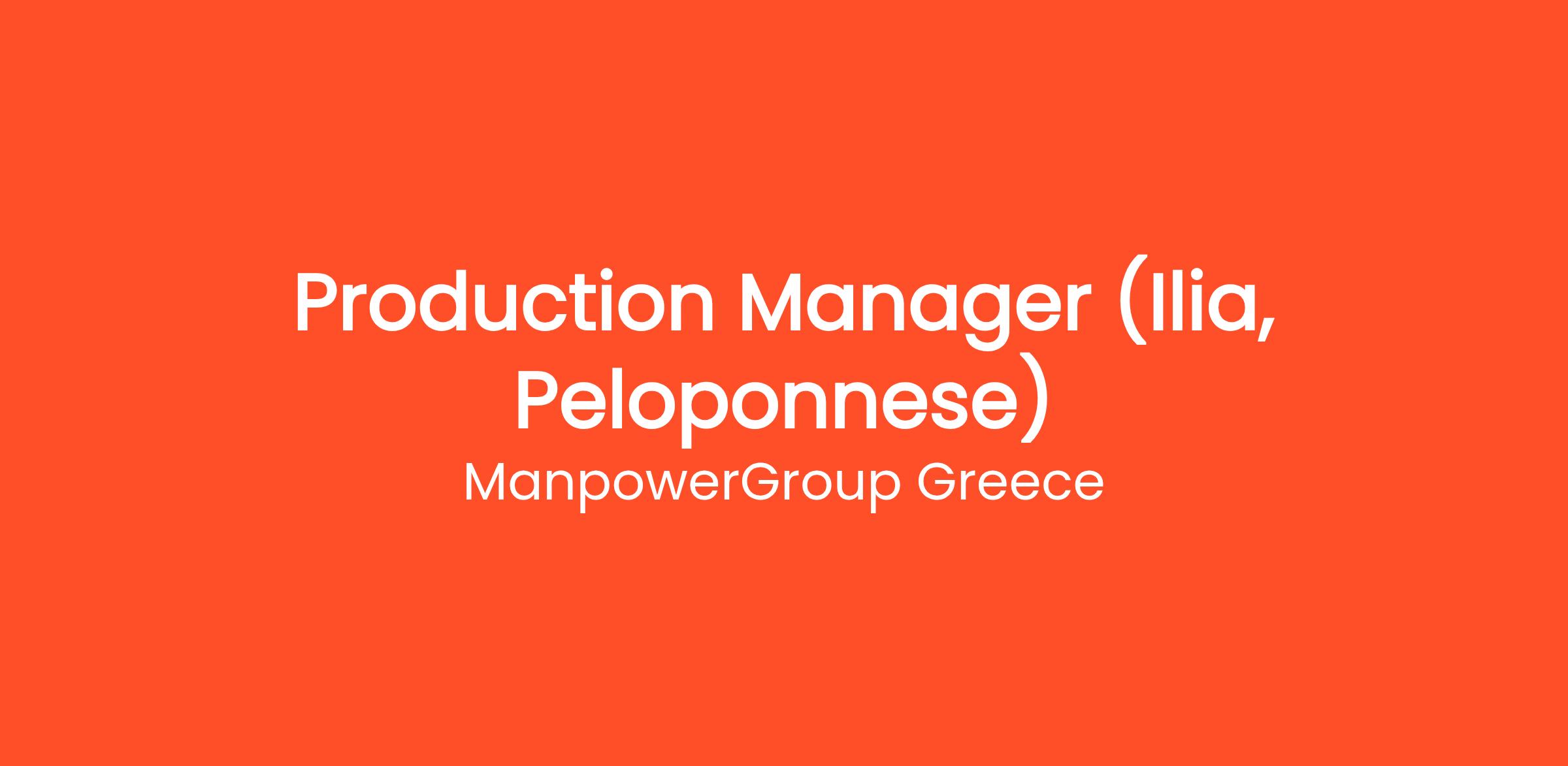 ManpowerGroup Greece, on behalf of its client, a food production and trading company, with a leading position in the Greek Market and export activity, is looking for the production unit in Ilia a Production Manager