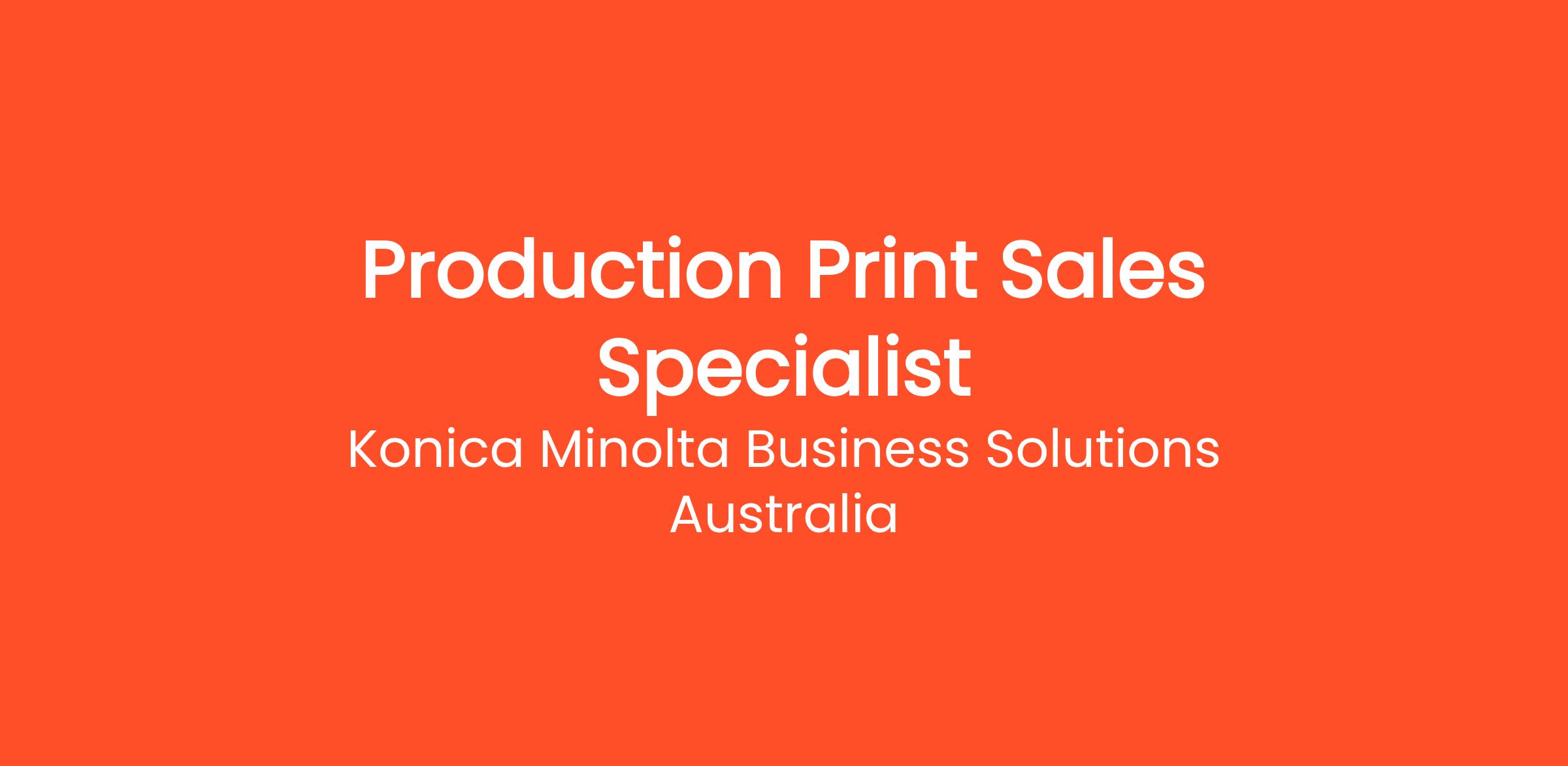 This role is responsible for growing Konica Minolta’s market share of Production and Industrial Print in an assigned territory by representing our industry leading portfolios in this market vertical. You will utilise professional sales and account management expertise to achieve and exceed revenue budget through new business and an existing customer user base.