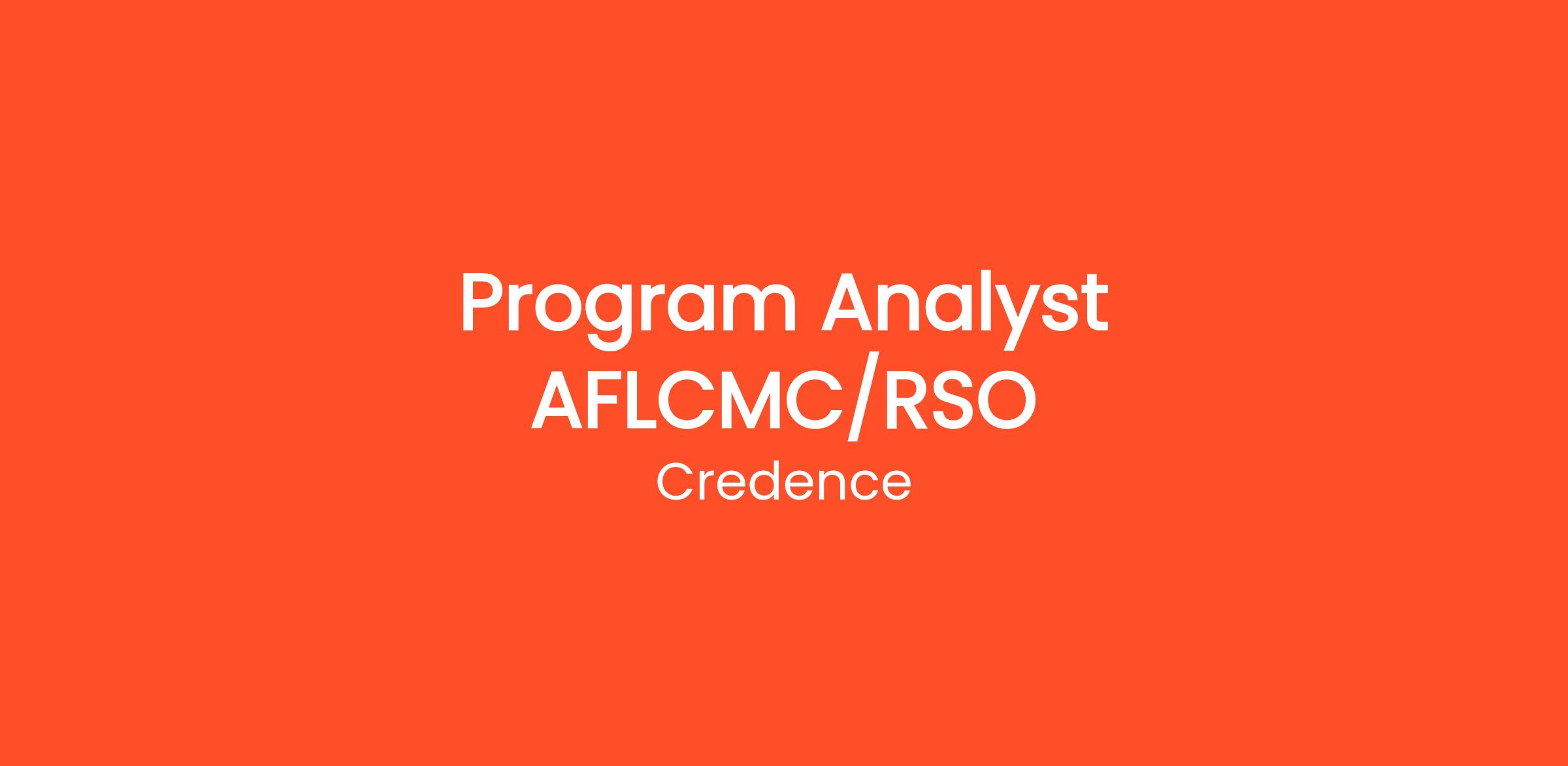 Credence has an immediate opening for a Program Analyst who will be primarily responsible for supporting AFLCMC/RSO at Wright Patterson AFB, OH.