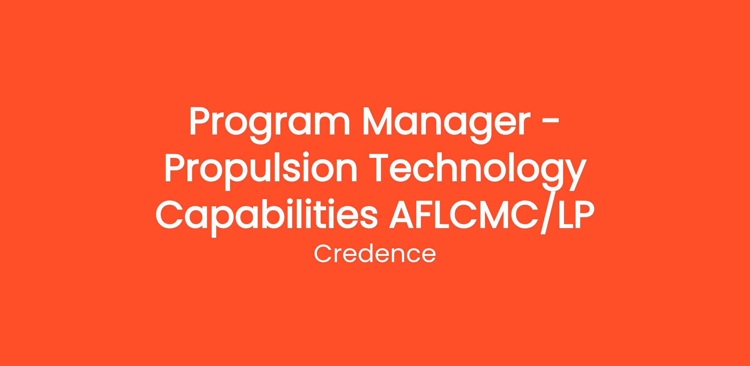 Credence has an immediate opening for an experienced Program Manager - Propulsion Technology Capabilities who will be primarily responsible for supporting Air Force Life Cycle Management Center (AFLCMC)/LP at Tinker Air Force Base, OK.