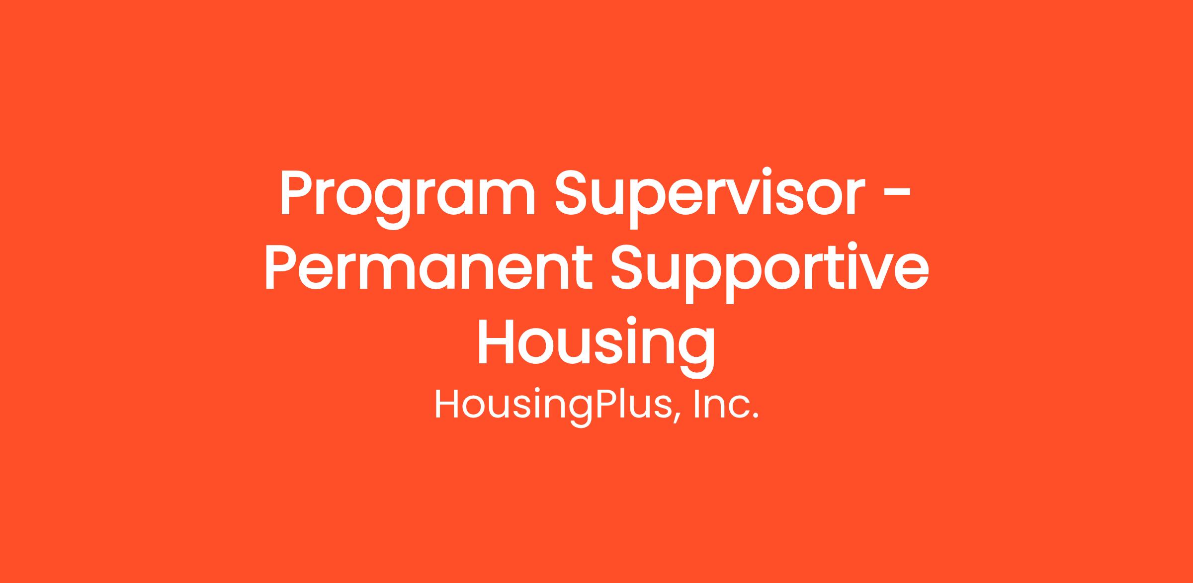 HousingPlus (HP) is seeking to hire a dynamic and passionate Program Supervisor who can implement and