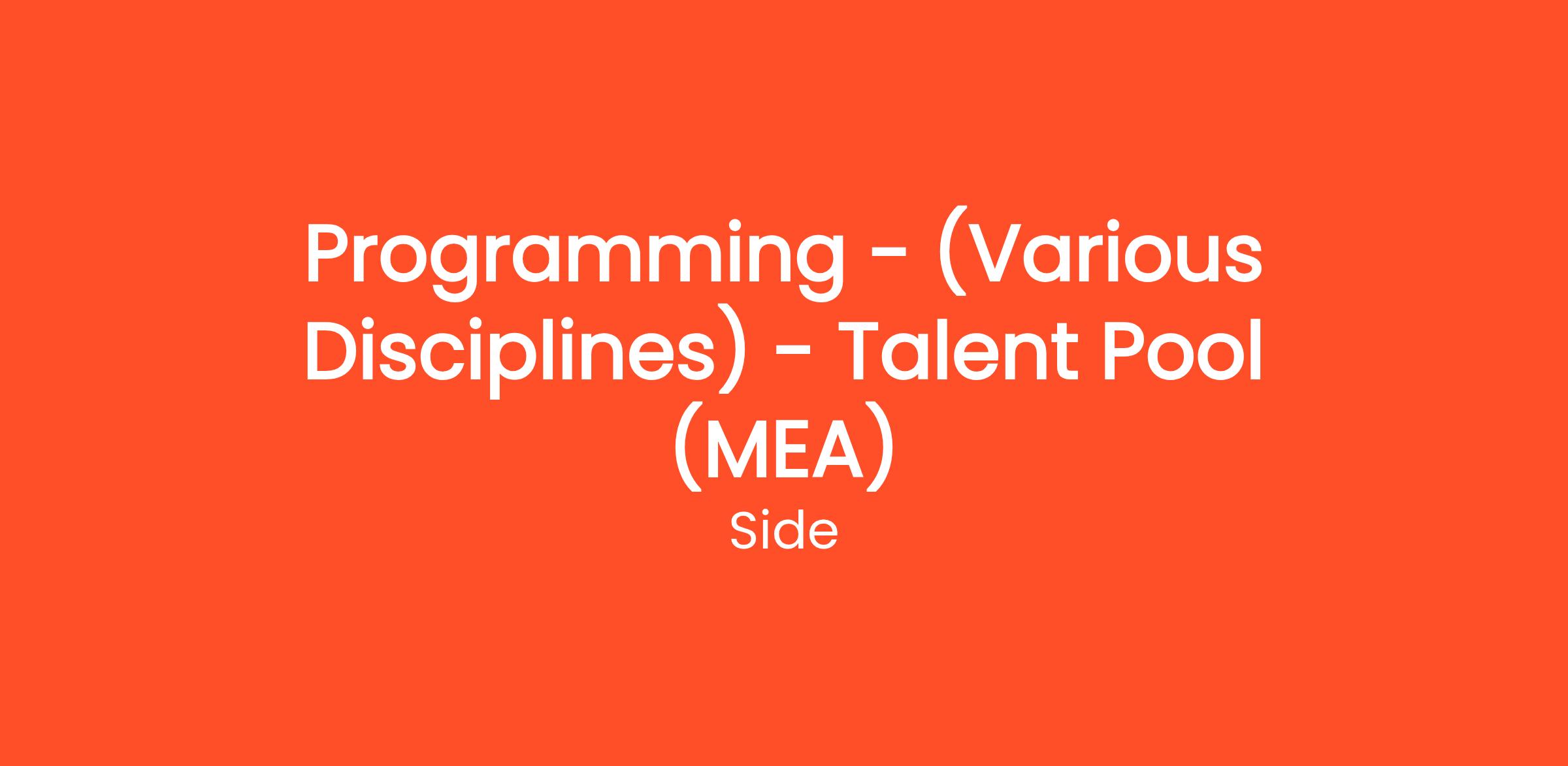 Programming - (Various Disciplines) - Talent Pool (MEA)