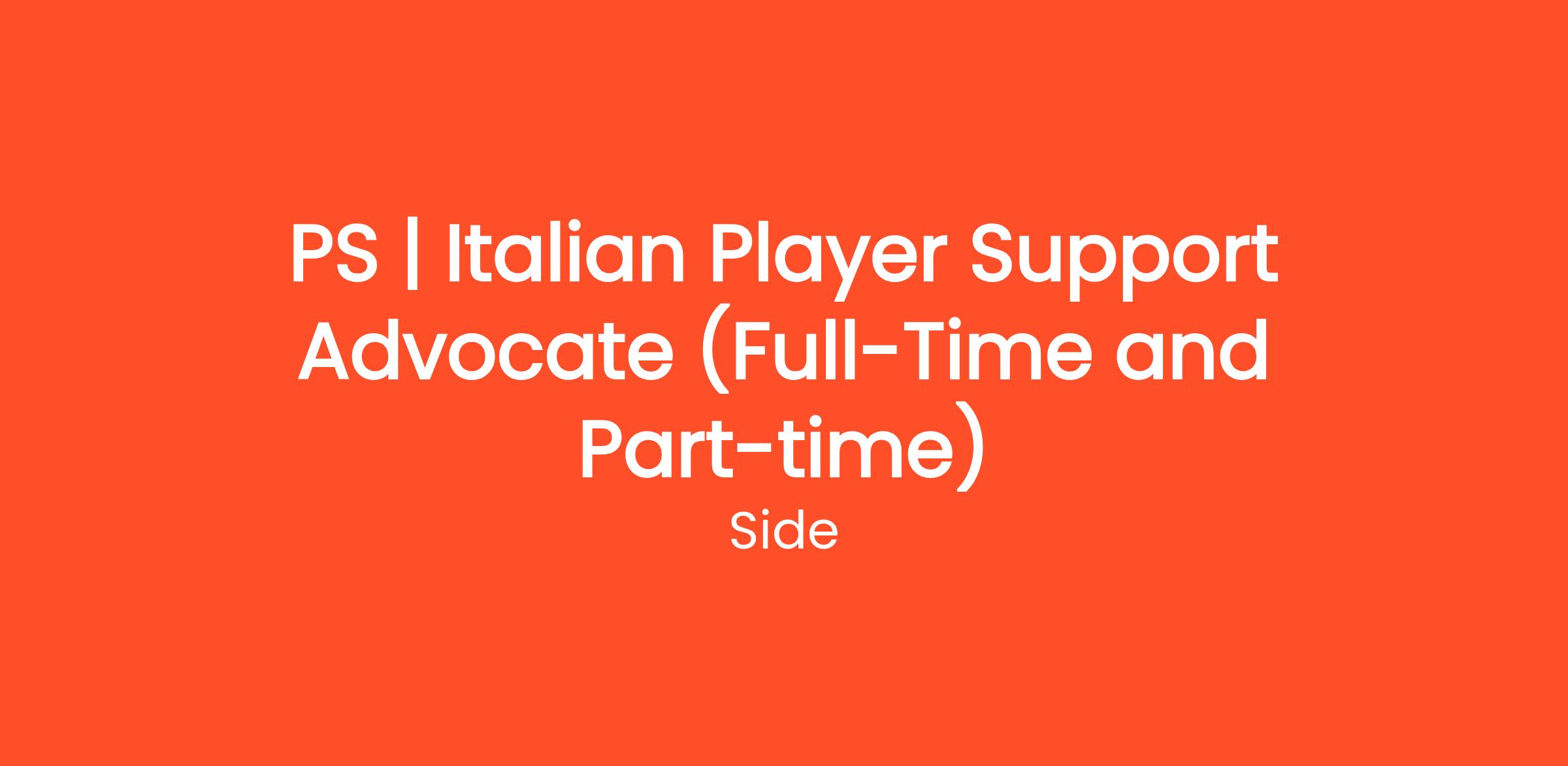 Side is looking for a Full-Time and Part-Time Italian Player Support Advocate. As a Player Support Advocate, you’ll represent our brand by delivering top-tier support to gamers and loyal customers. We’re looking for someone passionate about customer service, calm under pressure, technically inclined, and proactive with a positive "can-do" attitude.