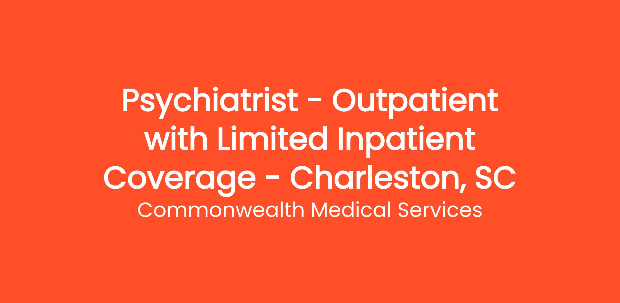 We are seeking a dedicated and compassionate Psychiatrist to join our Charleston-based behavioral health team. This role primarily focuses on outpatient psychiatric care, with the flexibility and balance of limited inpatient coverage (minimum one weekend per month). The ideal candidate is passionate about improving patient outcomes, values collaborative teamwork, and is comfortable working in both structured and autonomous environments.
