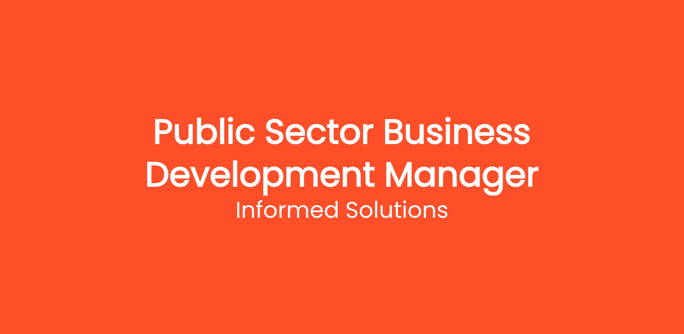 We are seeking a Business Development Manager to work as a senior leader within our Public Sector Team