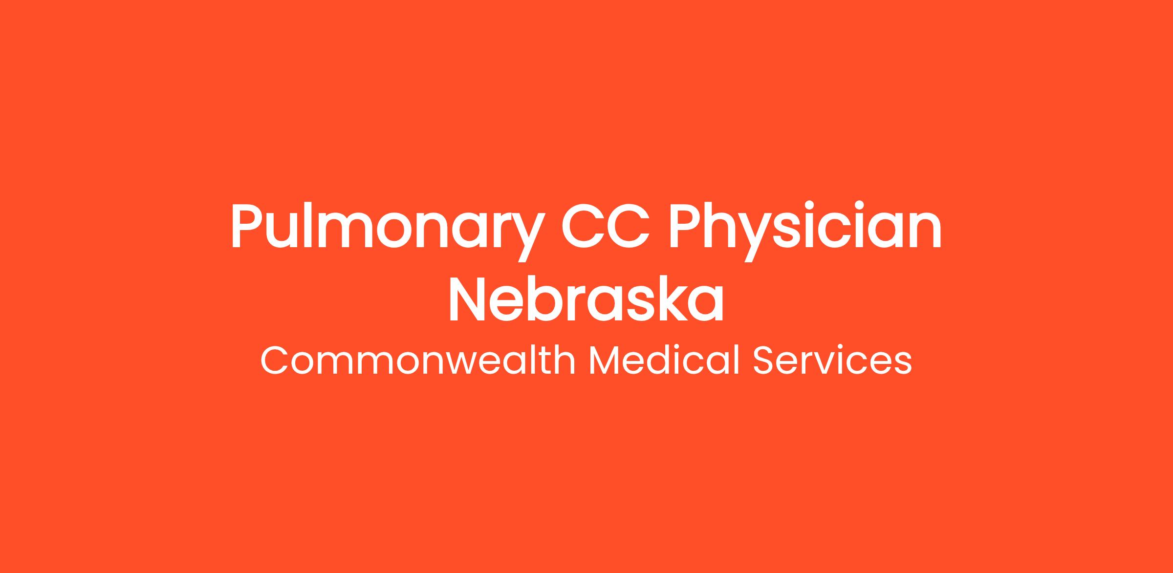 Commonwealth Medical Services is excited to announce an opening for a Pulmonary Critical Care Physician in Nebraska. This position is ideal for a dedicated and skilled physician who is passionate about providing high-quality care to critically ill patients with complex pulmonary conditions.