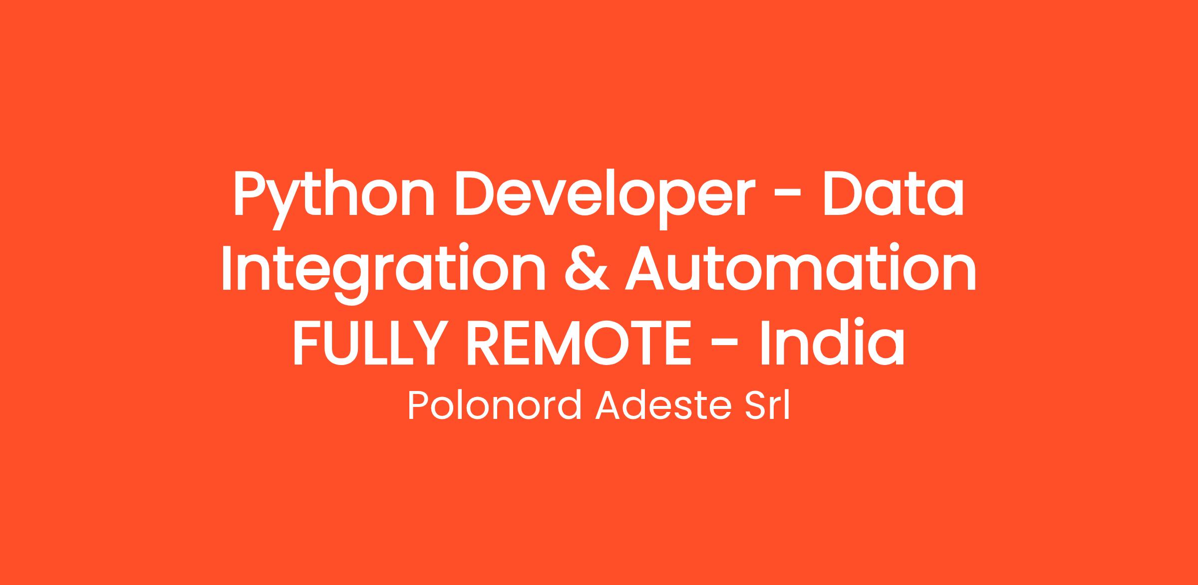 Python Developer - Data Integration & Automation FULLY REMOTE.