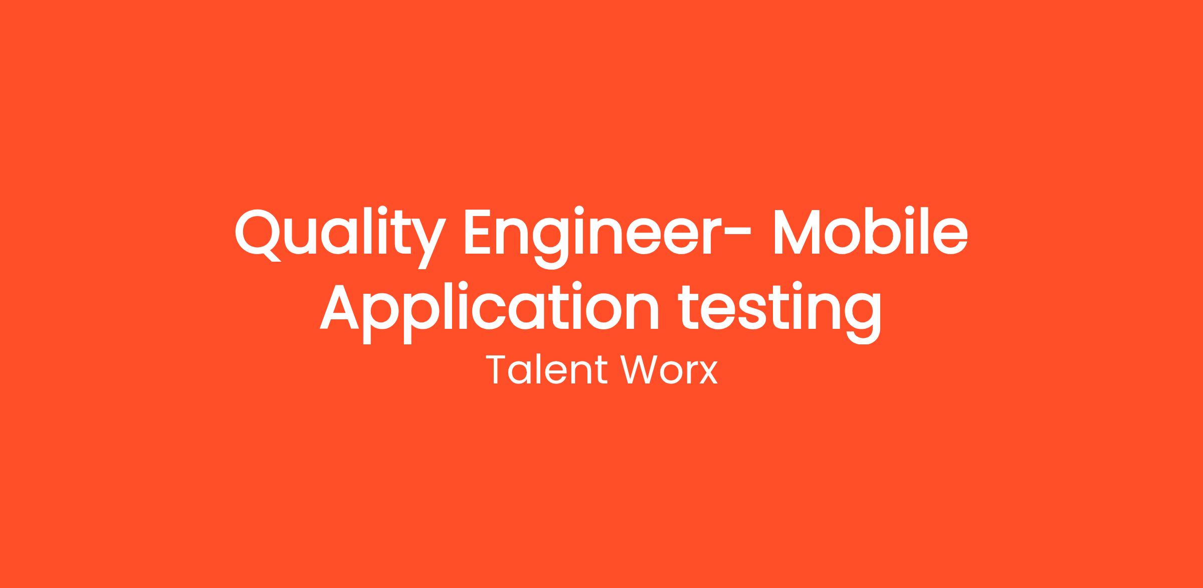 Job Title: Quality Engineer- Mobile Application testing