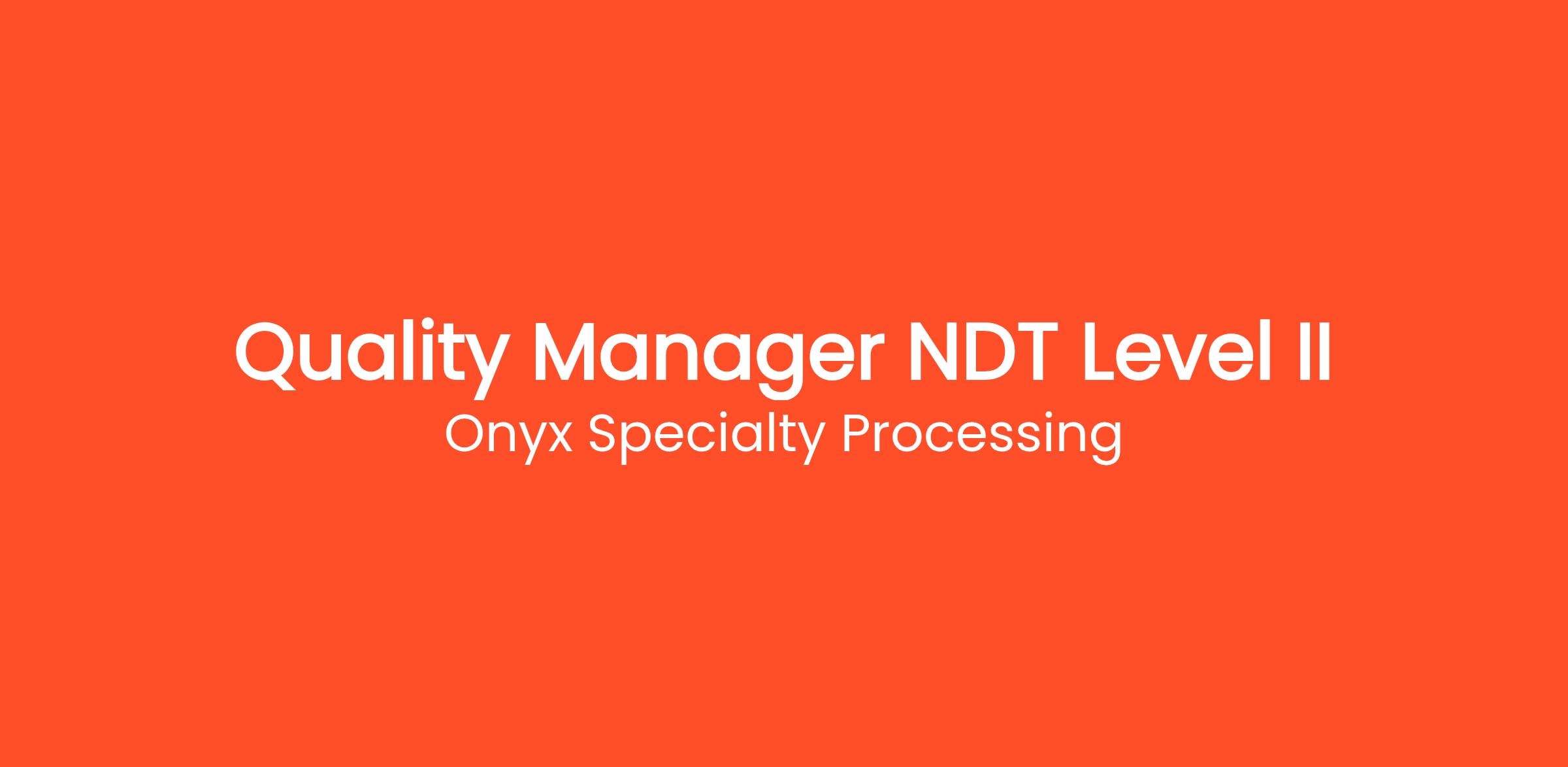 The Quality Manager will be responsible for overseeing and managing all quality-related activities within Onyx Specialty Processing, with a specific focus on NDT processes, particularly Fluorescent Penetrant Testing (PT). The ideal candidate will ensure compliance with industry standards, implement quality control measures, and develop training programs to foster a culture of quality throughout the organization.