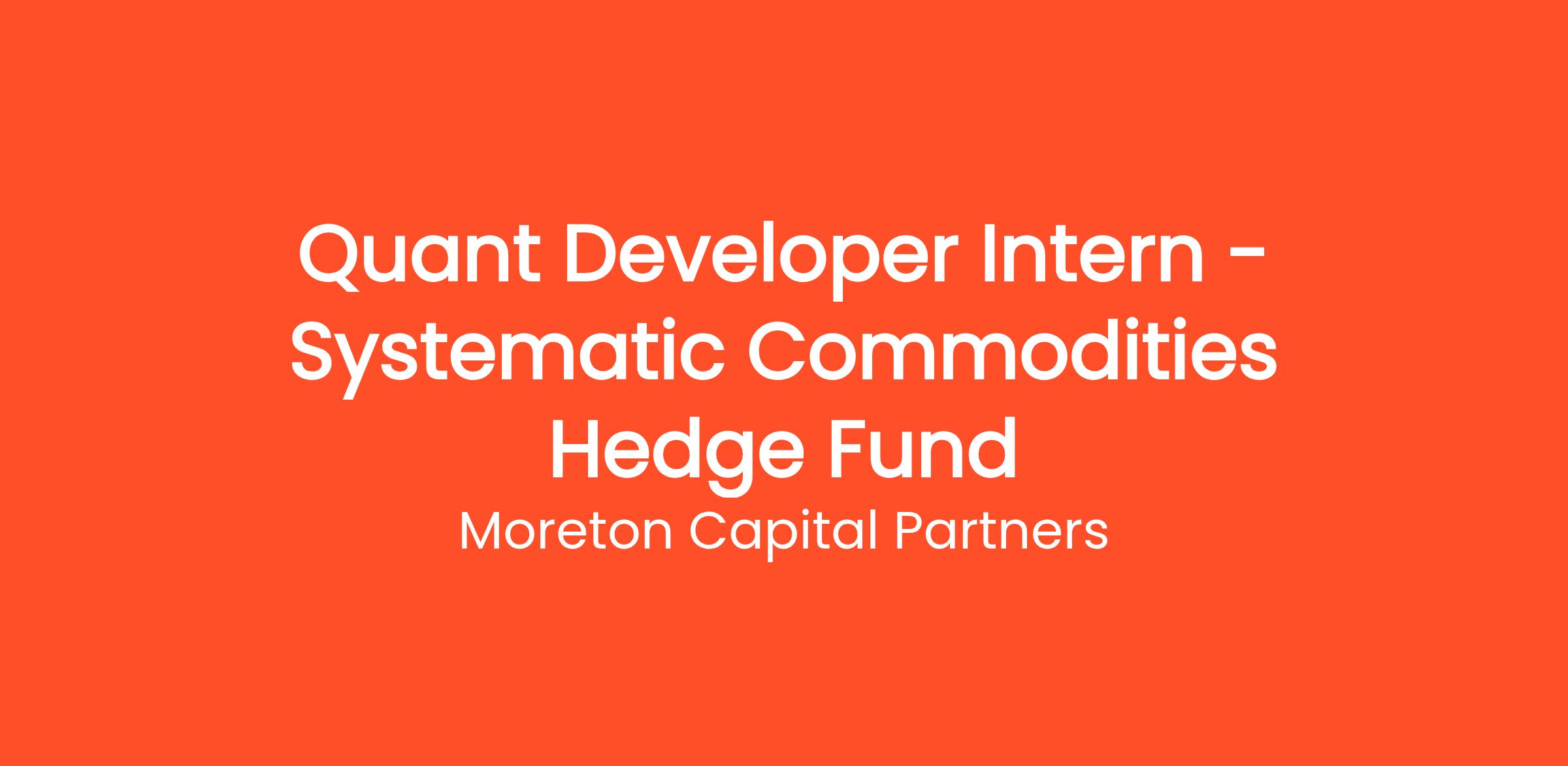Quant Developer Intern – Systematic Commodities Hedge Fund