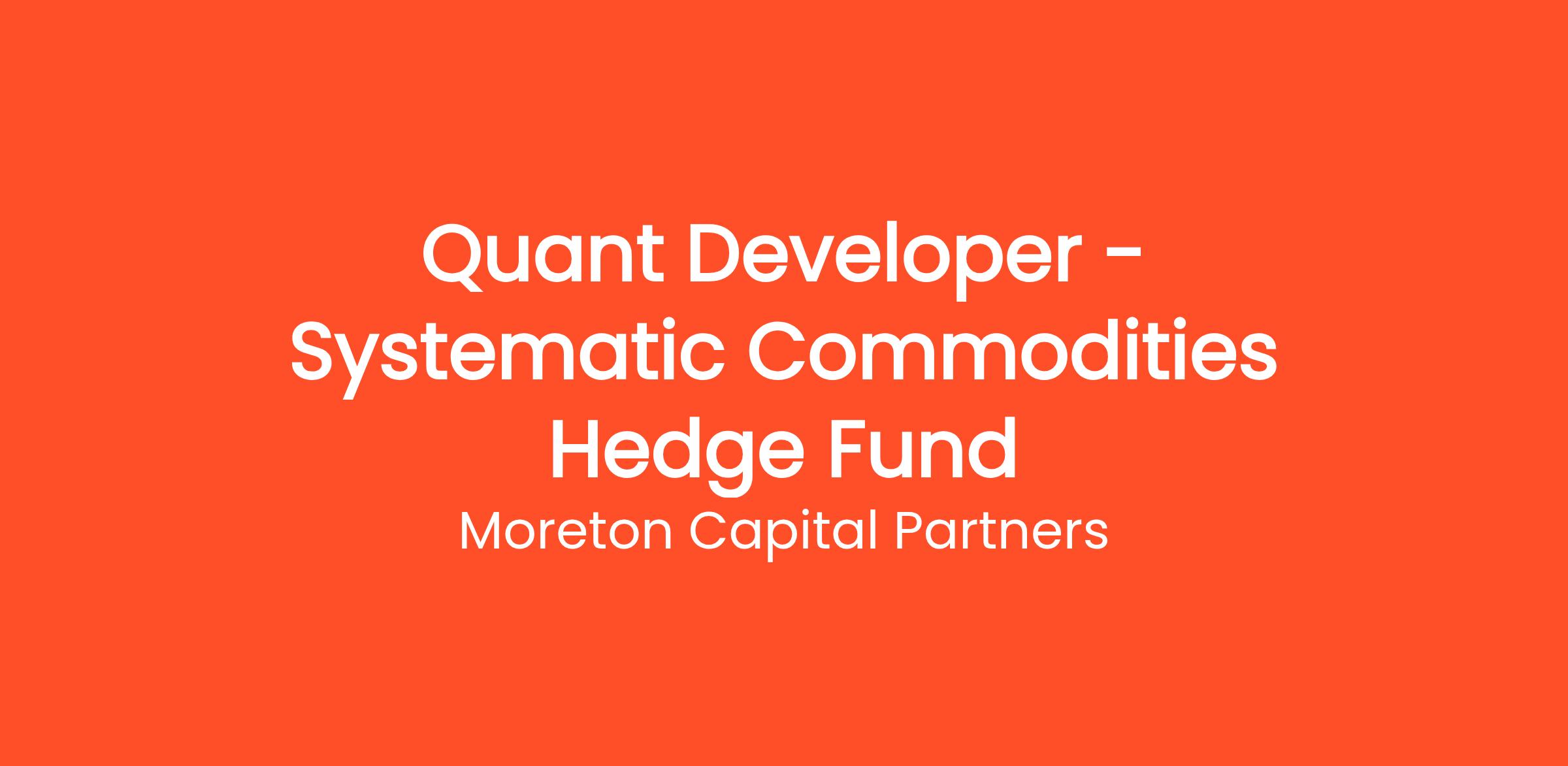 Moreton Capital Partners is seeking a talented Quant Developer to join our team at the ground floor of an ambitious build. We are launching live trading across global commodity futures, supported by an investment process rooted in machine learning.