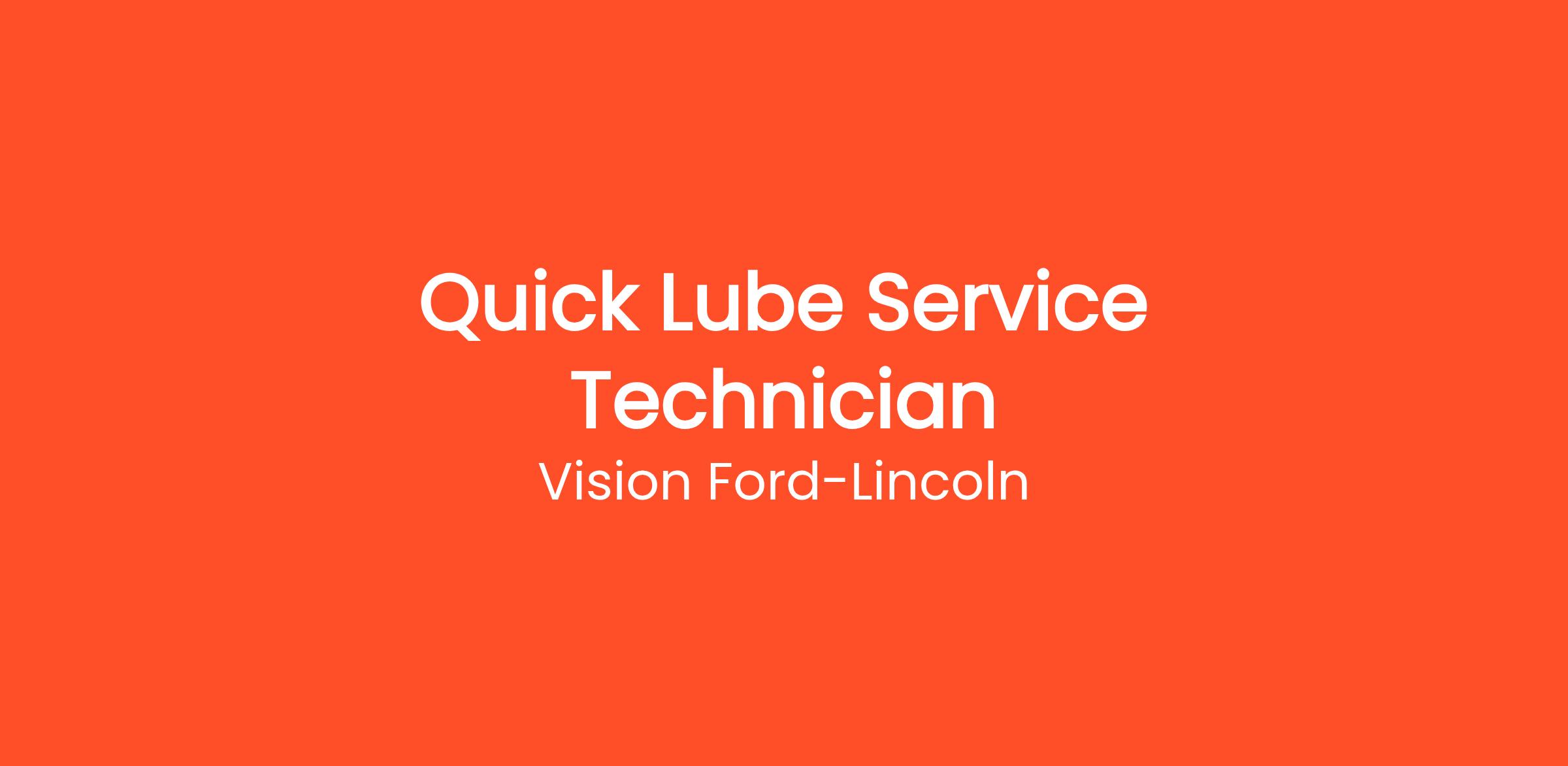 Vision Ford Lincoln is looking for a reliable and motivated Quick Lube Service Technician to join our high-energy service team. If youβre passionate about cars, love working with your hands, and want to grow in the automotive industry β this role is your entry lane to success! Youβll handle oil changes, inspections, and basic vehicle maintenance with speed, accuracy, and a customer-first attitude. π