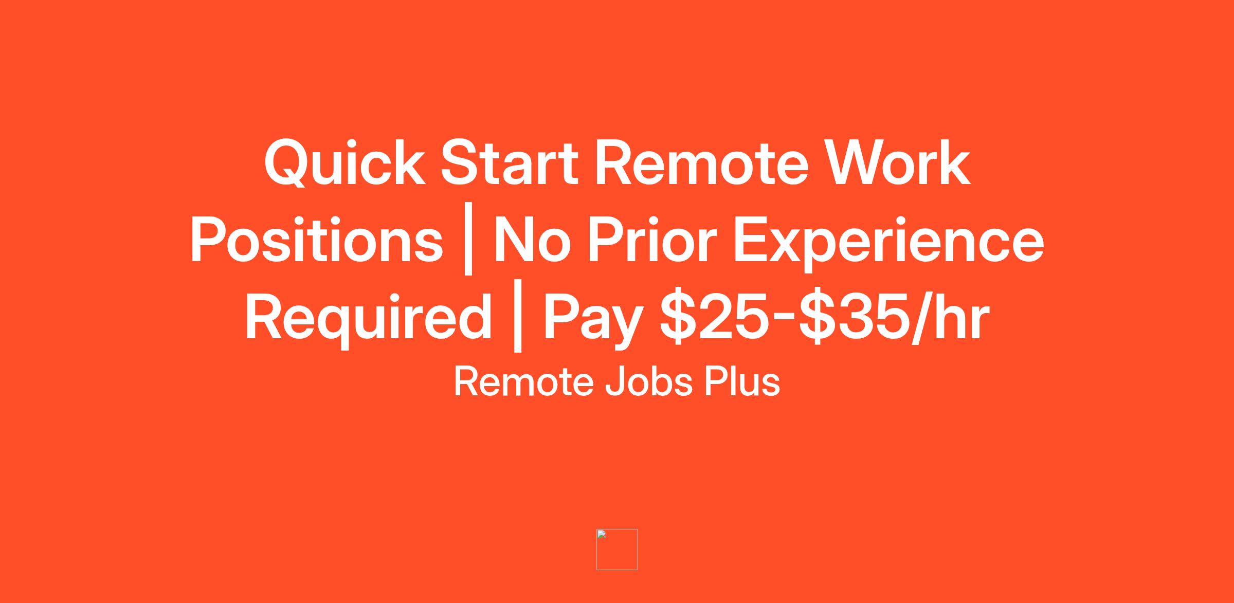 Quick Start Remote Work Positions | No Prior Experience Required | Pay $25-$35/hr