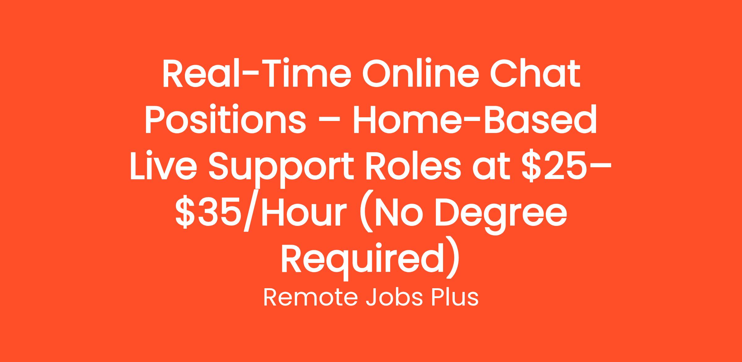 Real-Time Online Chat Positions – Home-Based Live Support Roles at $25–$35/Hour (No Degree Required)