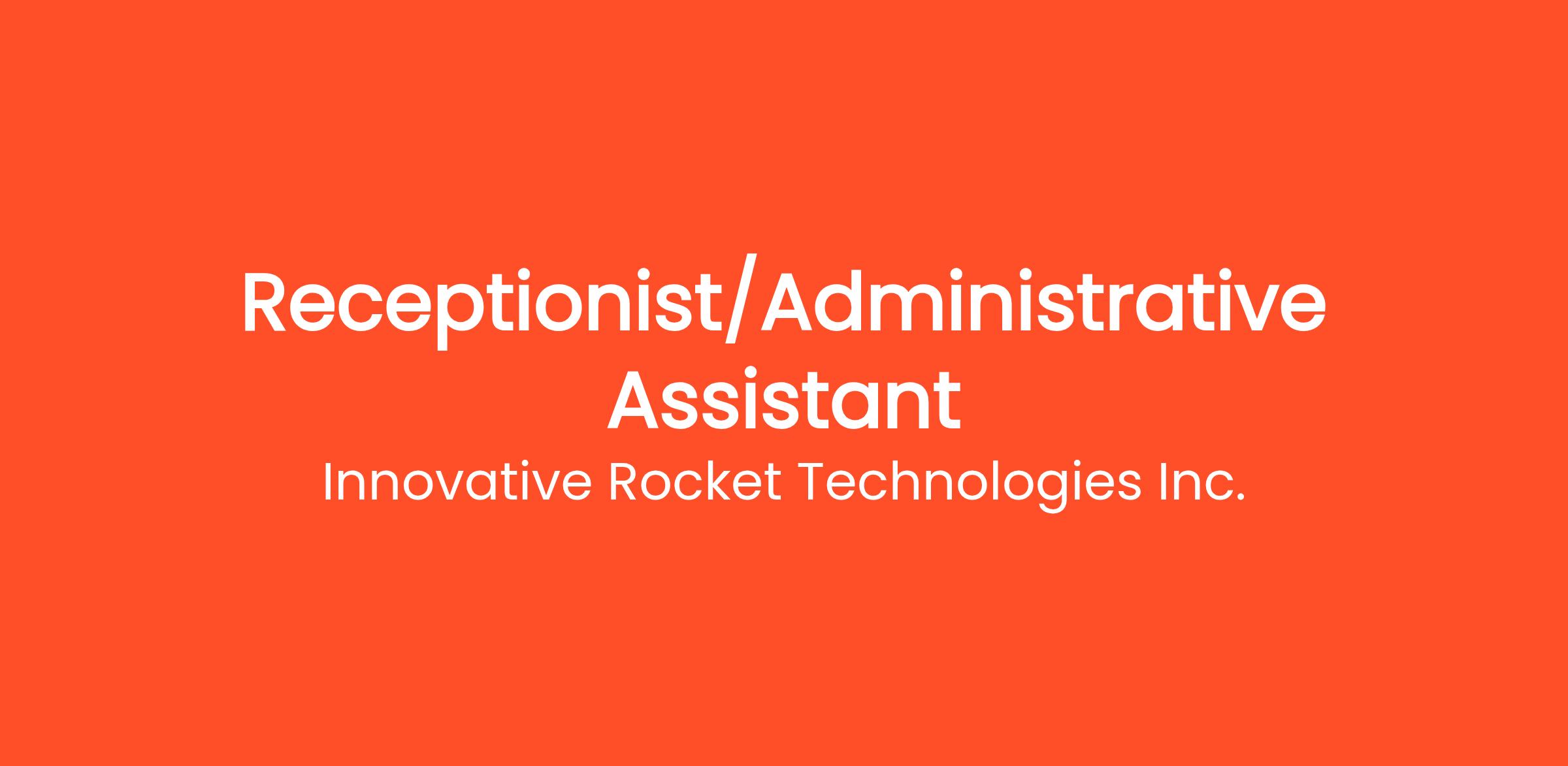 iRocket (Innovative Rocket Technologies Inc.) is pioneering fully reusable, fully autonomous small launch vehicles to make access to space faster, more affordable, and sustainable. As our team expands, we’re looking for a Receptionist/Administrative Assistant to help keep our office running smoothly and ensure a professional, welcoming environment for visitors, partners, and team members alike.