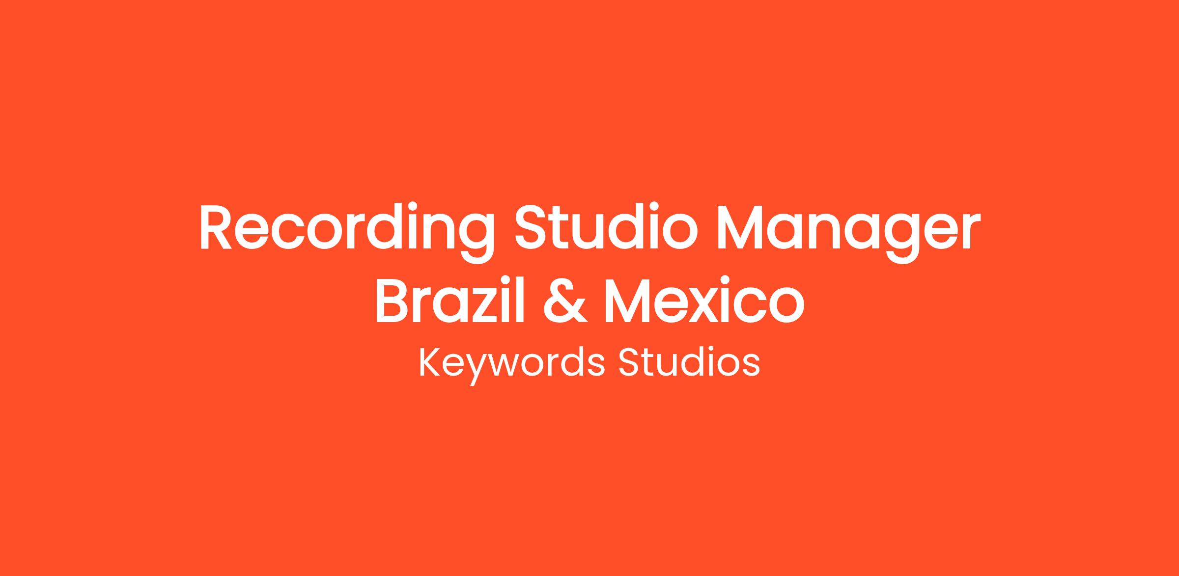 The Recording Studio Manager oversees the whole recording studio for Mexico & Brazil and takes care of the local audio production. Also, the Recording Studio Manager, reporting to the Recording Studio Operations Director in a specific area, will collaborate with the Recording Studios team as part of Globalize in defining the local strategy and implementing it. The scope includes recording studio management, facility management, recording team management, recording studio utilization and strategy to improve it, support to Portfolio Directors, customer facing and selling, dialogue with actors and local unions, external freelancers management, and expansion of studio facility for future business growth. The Recording Studio Manager works closely with all locations and contribute to the growth of Keywords group.