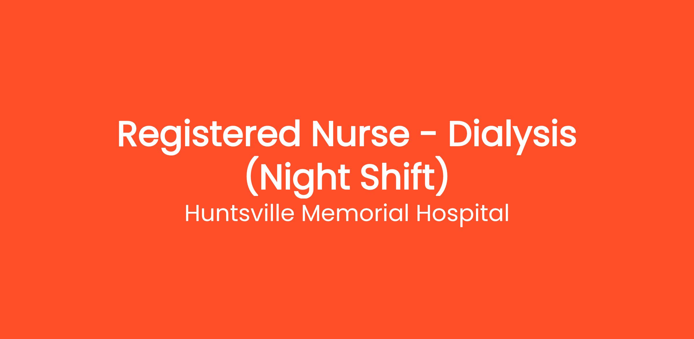 Experience: One year of Dialysis experience required.