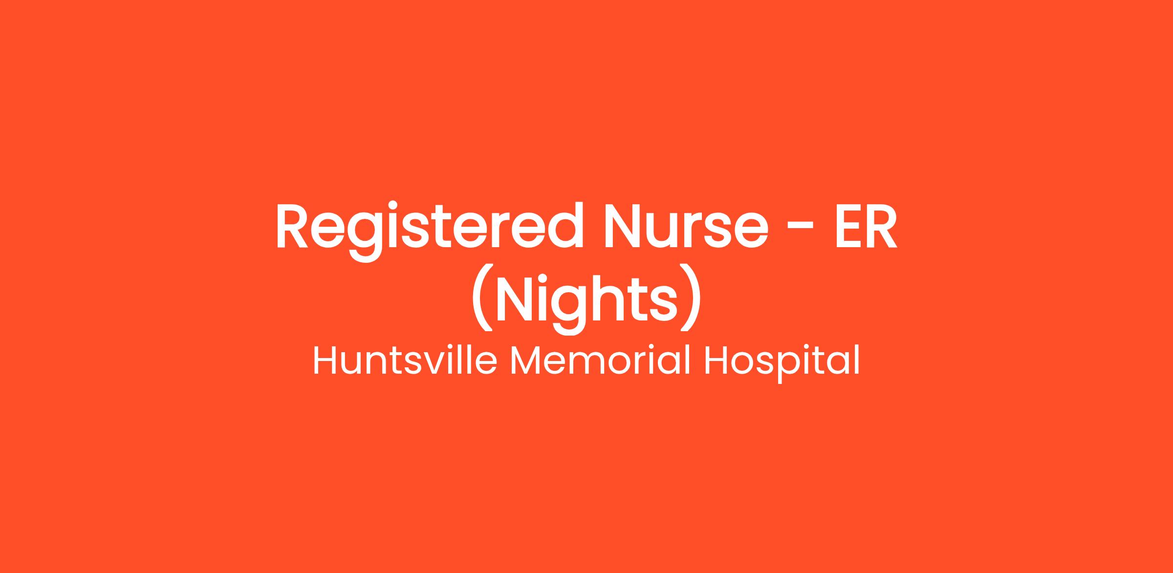 All positions of Huntsville Memorial Hospital are part of an interdisciplinary team, and as such, participate in the care and service delivery process through effective interaction with other team members. Primarily interacts with hospital staff, medical staff, patients, and visitors. Supervises LVNs, Techs, Scribes, Unit Clerks and other non-licensed personnel. Reports to Charge Nurse, Physician or Extender, Director of Emergency.