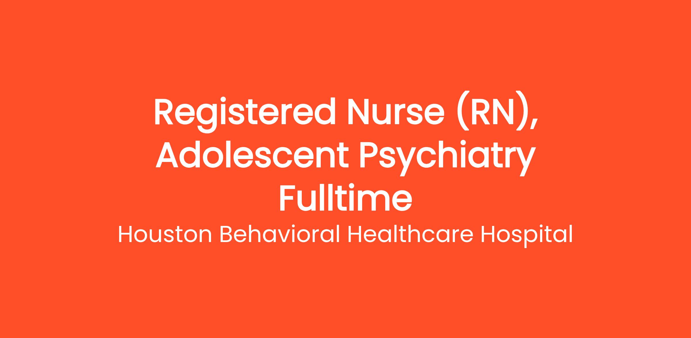 Houston Behavioral Healthcare Hospital is currently recruiting for Fulltime Registered Nurse Adolescents Girls Units (12 hour Shift and rotating weekends)