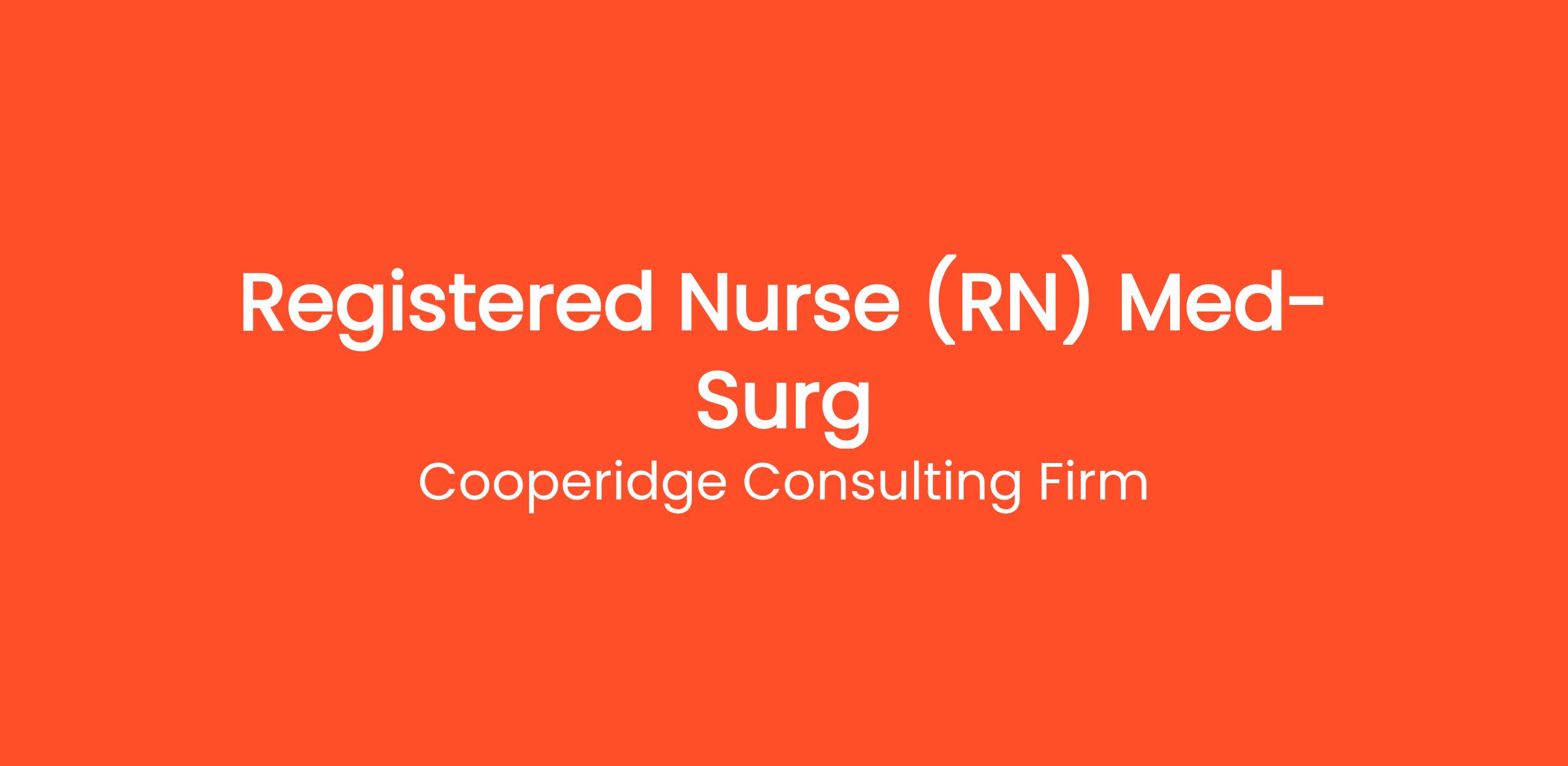 Cooperidge Consulting Firm is seeking an RN Medical Surgical for a top Healthcare client.