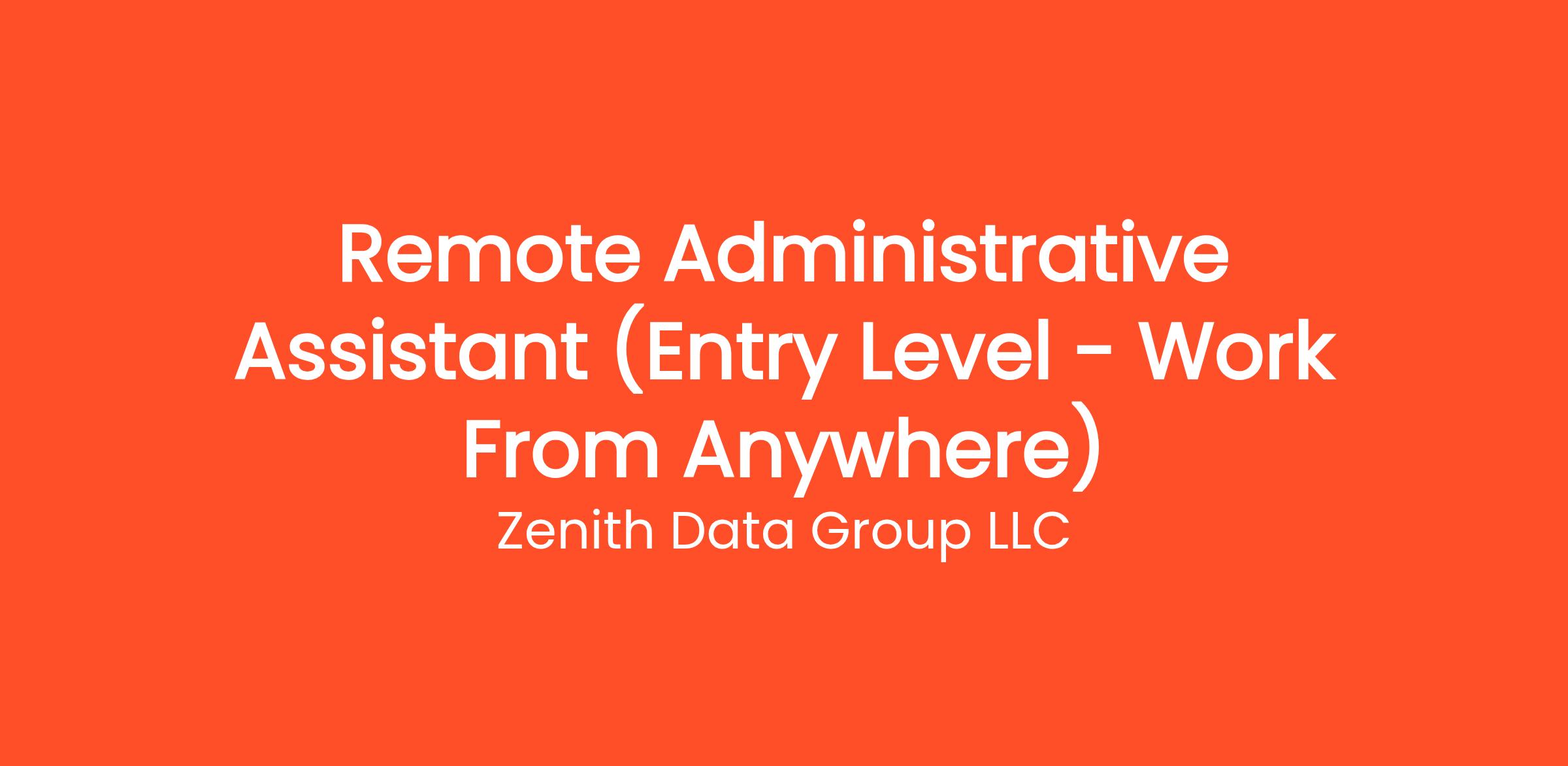 Are you highly organized and looking for the perfect entry-level opportunity? Zenith Data Group LLC is currently seeking a Remote Administrative Assistant (Entry Level - Work From Anywhere) to join our rapidly growing remote team. If you've been searching for remote jobs no degree or overnight remote jobs, this is the exact role you've been looking for. No degree required and no prior experience is necessary—we provide comprehensive training to all new hires! You will be responsible for critical daily operations, managing secure platforms, and contributing to our vibrant digital culture.
