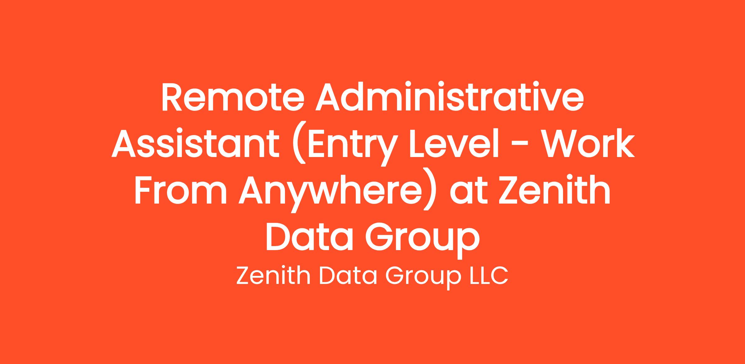 Are you highly organized and looking for the perfect entry-level opportunity? Zenith Data Group LLC is currently seeking a Remote Administrative Assistant (Entry Level - Work From Anywhere) to join our rapidly growing remote team. If you've been searching for remote jobs no degree or overnight remote jobs, this is the exact role you've been looking for. No degree required and no prior experience is necessary—we provide comprehensive training to all new hires! You will be responsible for critical daily operations, managing secure platforms, and contributing to our vibrant digital culture.