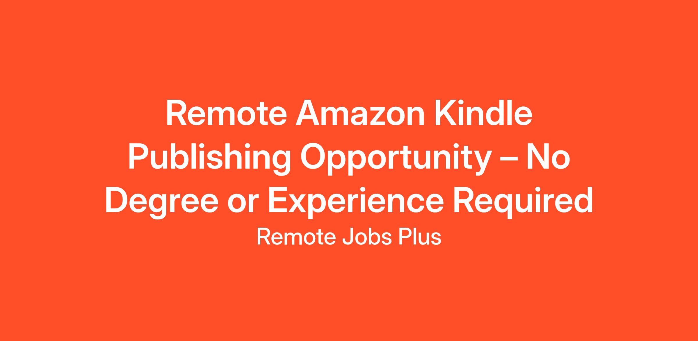 Remote Amazon Kindle Publishing Opportunity – No Degree or Experience Required