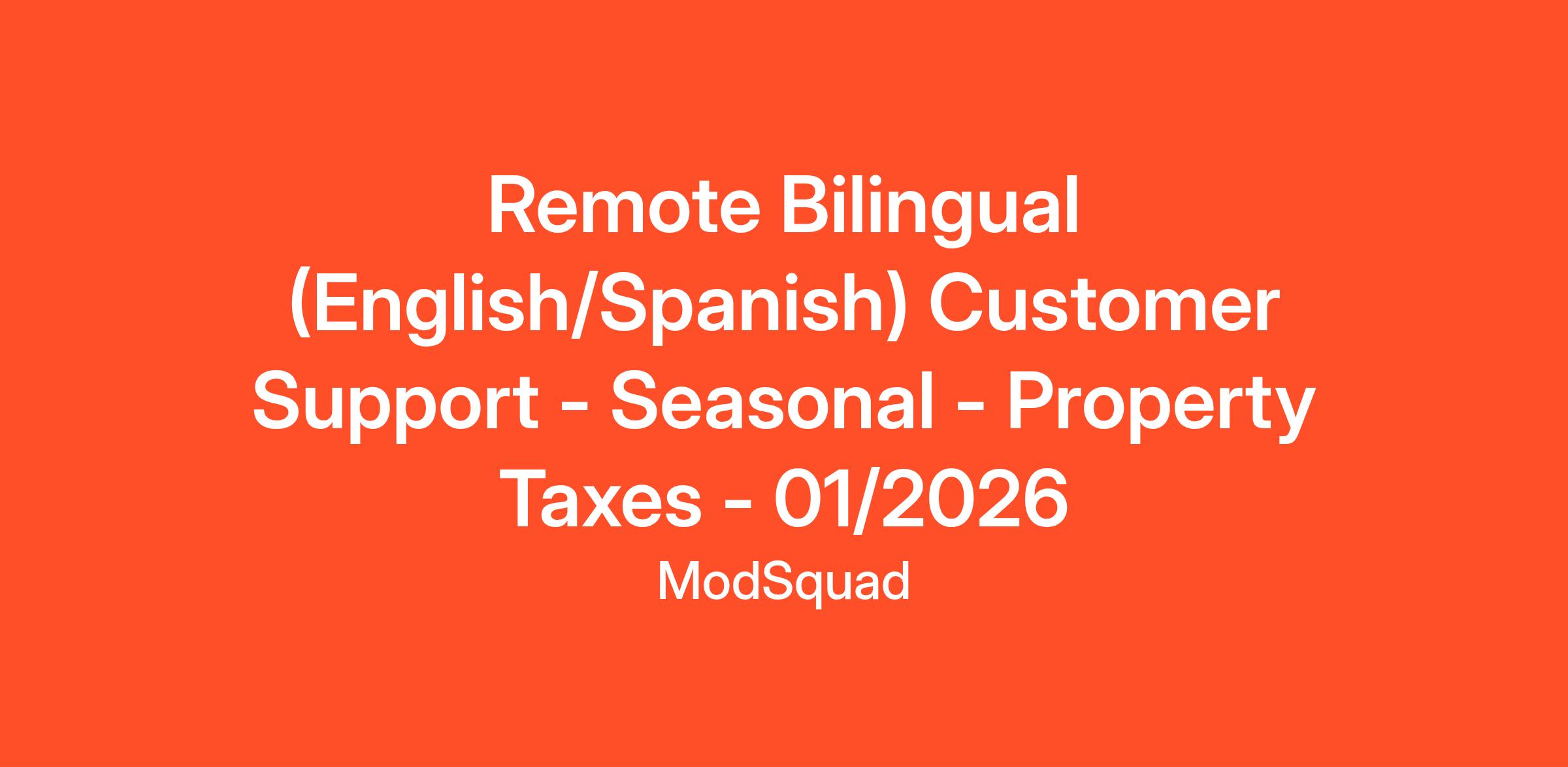 ModSquad is seeking experienced bilingual Customer Service Representatives to join our fully remote team. We’re looking for individuals who thrive on solving complex customer inquiries related to property taxes and enjoy helping people better understand their assessments and appeal options.