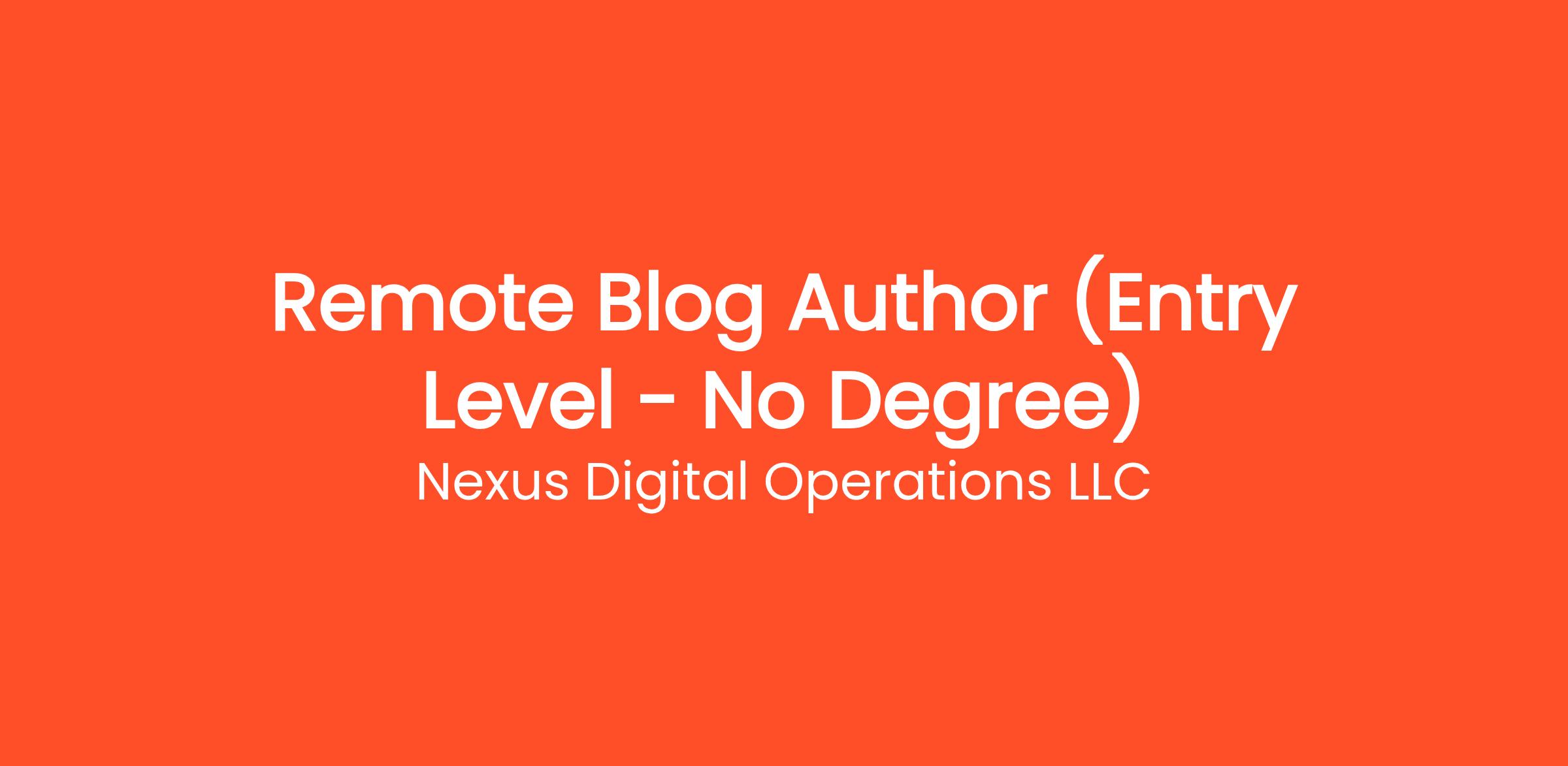 Are you highly organized and looking for the perfect entry-level opportunity? Nexus Digital Operations LLC is currently seeking a Remote Blog Author (Entry Level - No Degree) to join our rapidly growing remote team. If you've been searching for remote jobs no degree or remote jobs hiring, this is the exact role you've been looking for. No degree required and no prior experience is necessary—we provide comprehensive training to all new hires! You will be responsible for critical daily operations, managing secure platforms, and contributing to our vibrant digital culture.