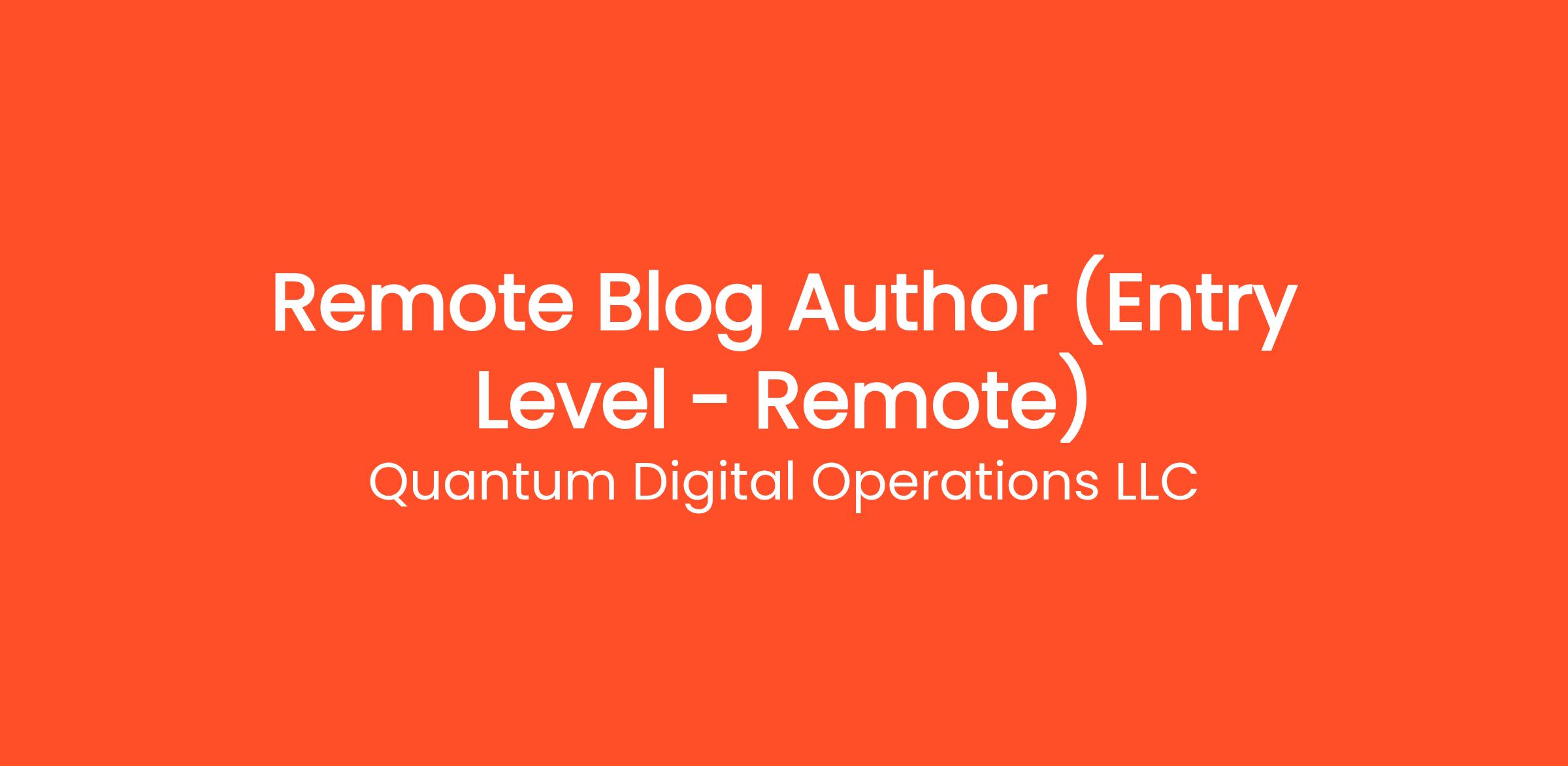 Are you highly organized and looking for the perfect entry-level opportunity? Quantum Digital Operations LLC is currently seeking a Remote Blog Author (Entry Level - Remote) to join our rapidly growing remote team. If you've been searching for remote jobs no degree or overnight remote jobs, this is the exact role you've been looking for. No degree required and no prior experience is necessary—we provide comprehensive training to all new hires! You will be responsible for critical daily operations, managing secure platforms, and contributing to our vibrant digital culture.