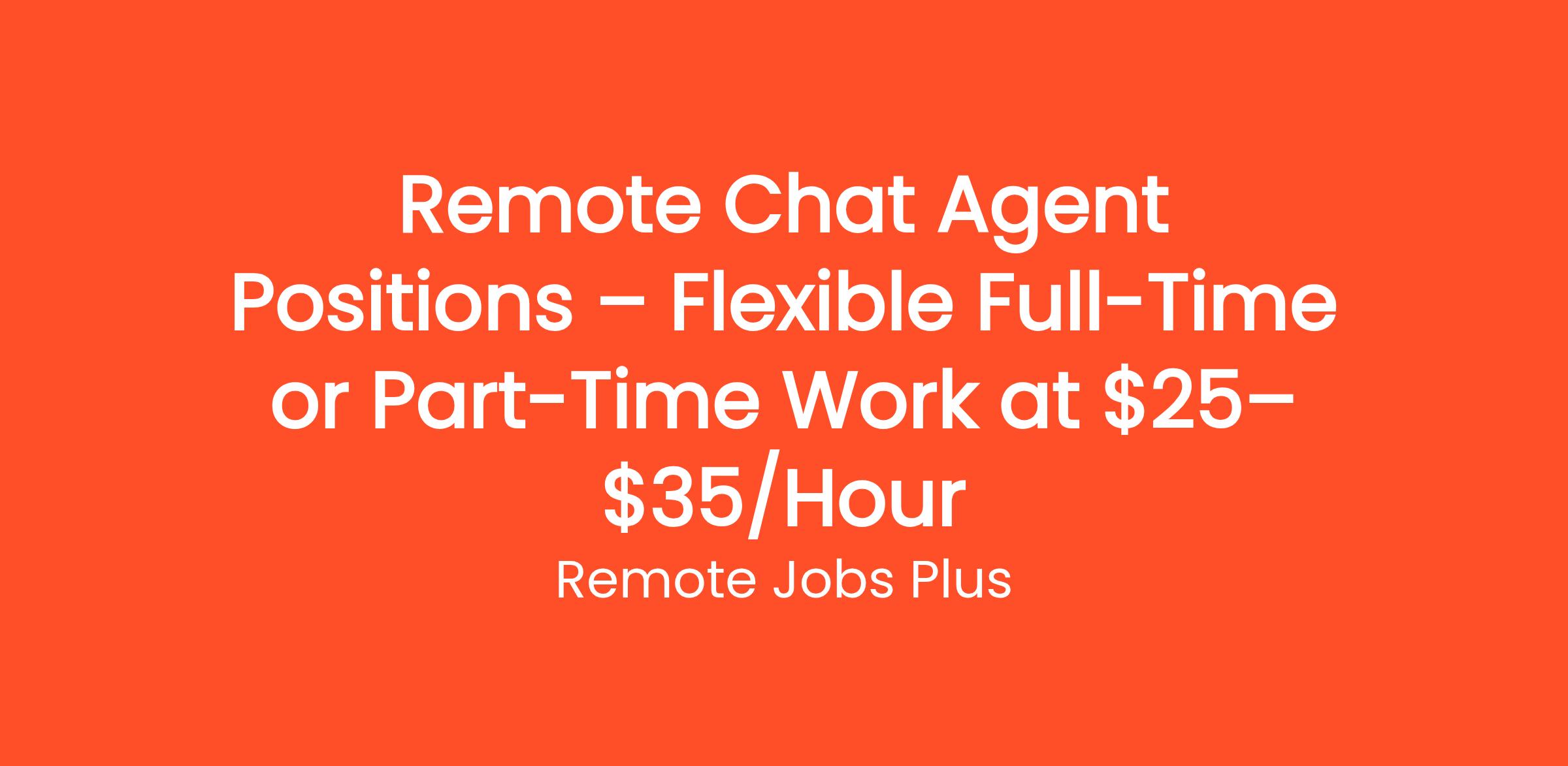 Remote Chat Agent Positions – Flexible Full-Time or Part-Time Work at $25–$35/Hour