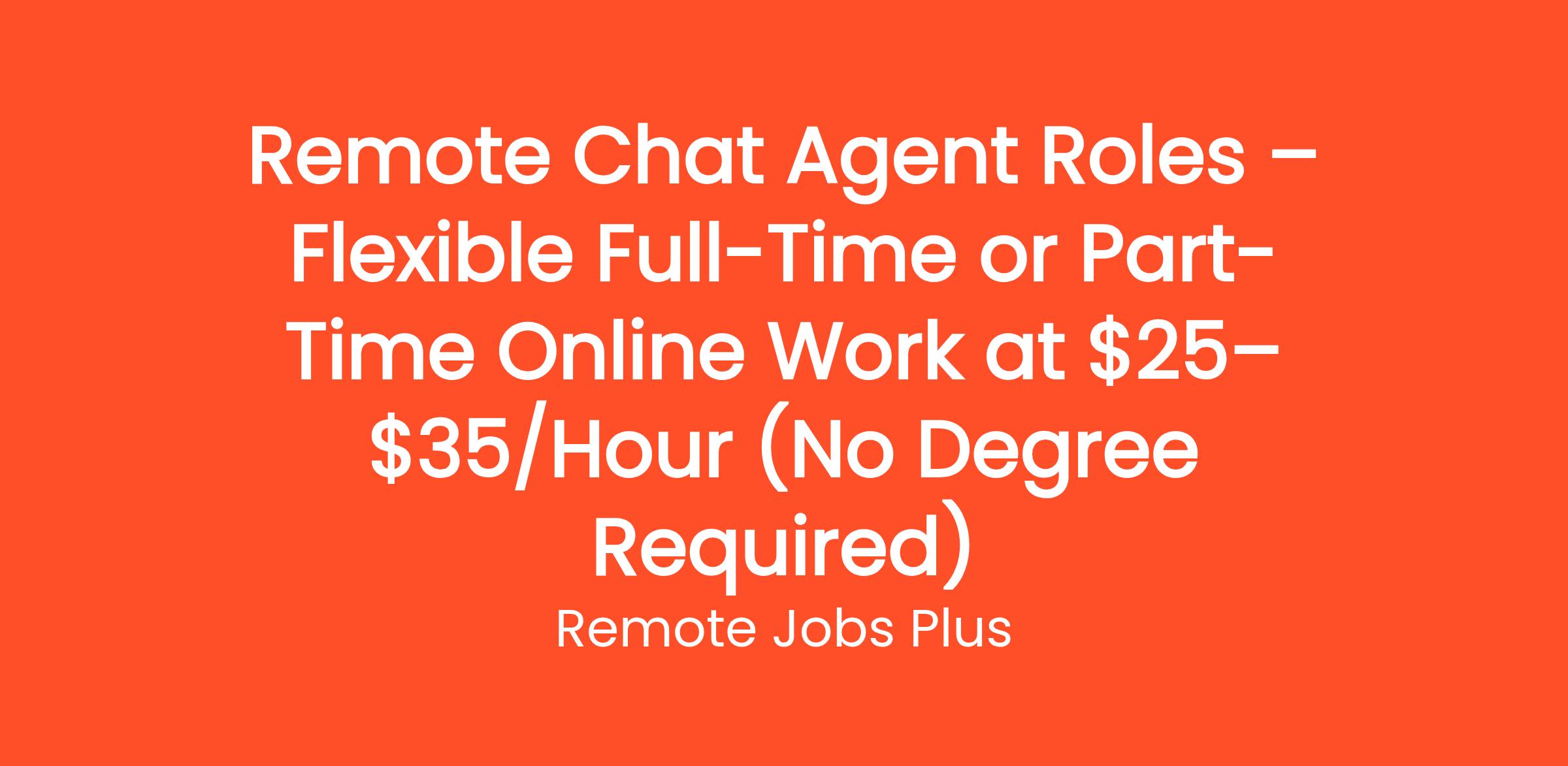 Remote Chat Agent Roles – Flexible Full-Time or Part-Time Online Work at $25–$35/Hour (No Degree Required)