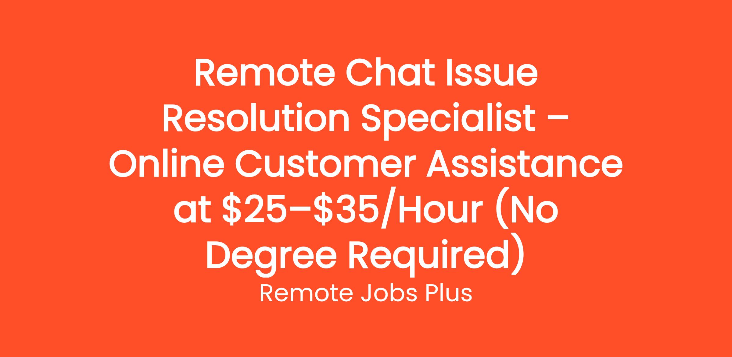 Remote Chat Issue Resolution Specialist – Online Customer Assistance at $25–$35/Hour (No Degree Required)