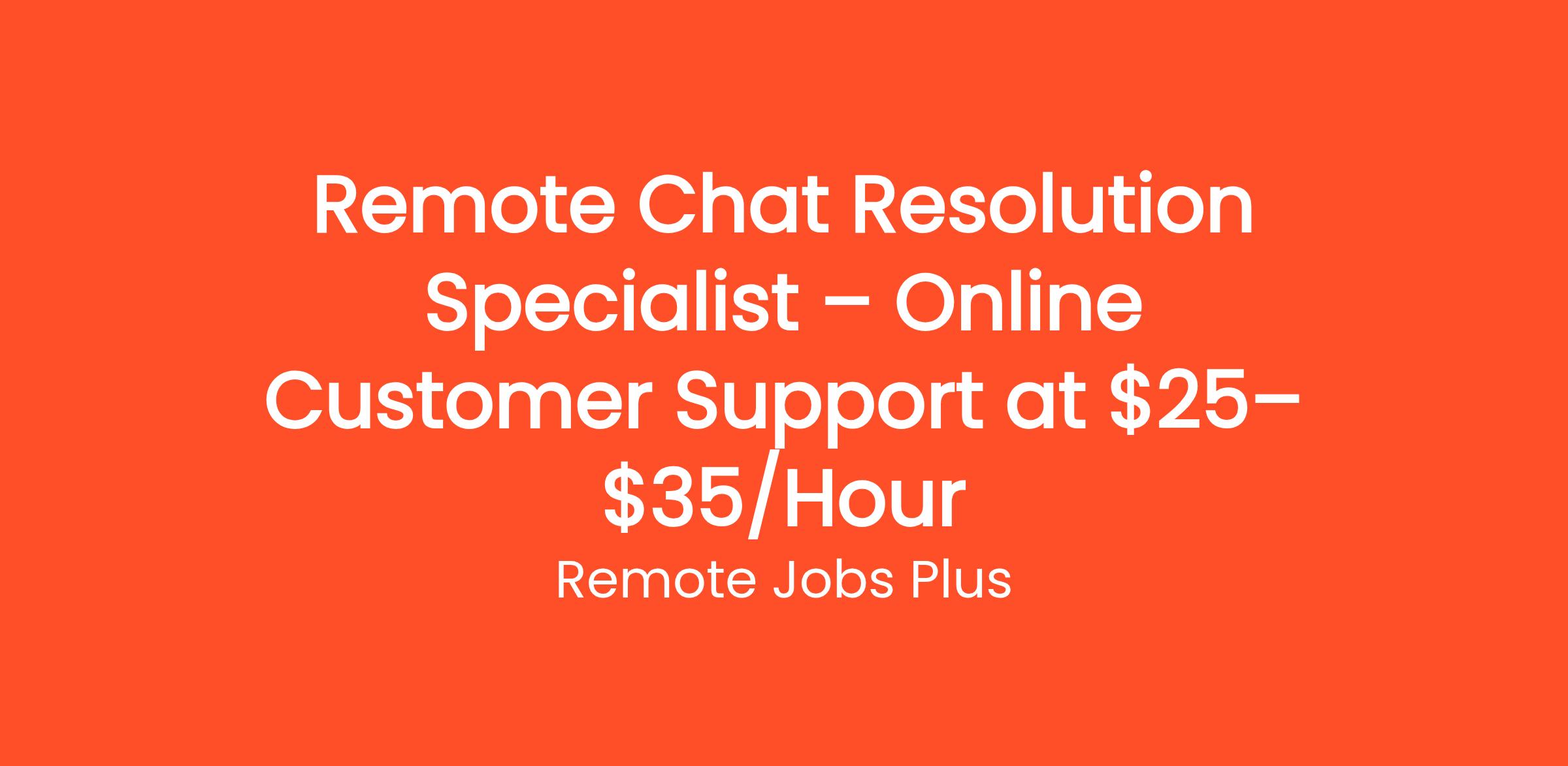 Remote Chat Resolution Specialist – Online Customer Support at $25–$35/Hour