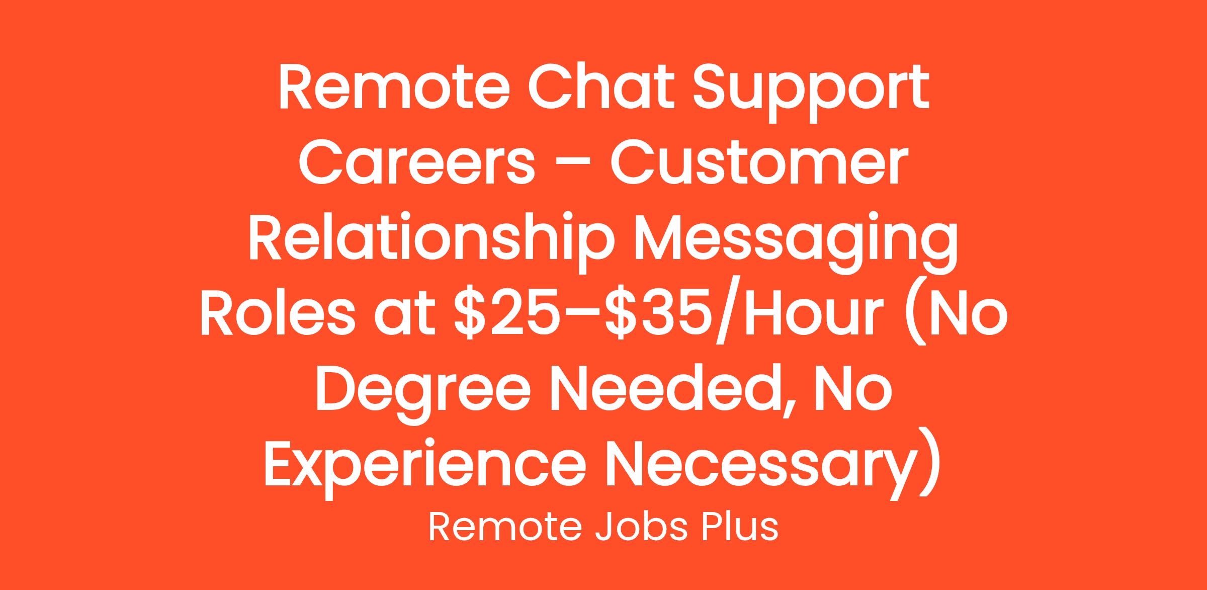 Remote Chat Support Careers – Customer Relationship Messaging Roles at $25–$35/Hour (No Degree Needed, No Experience Necessary)