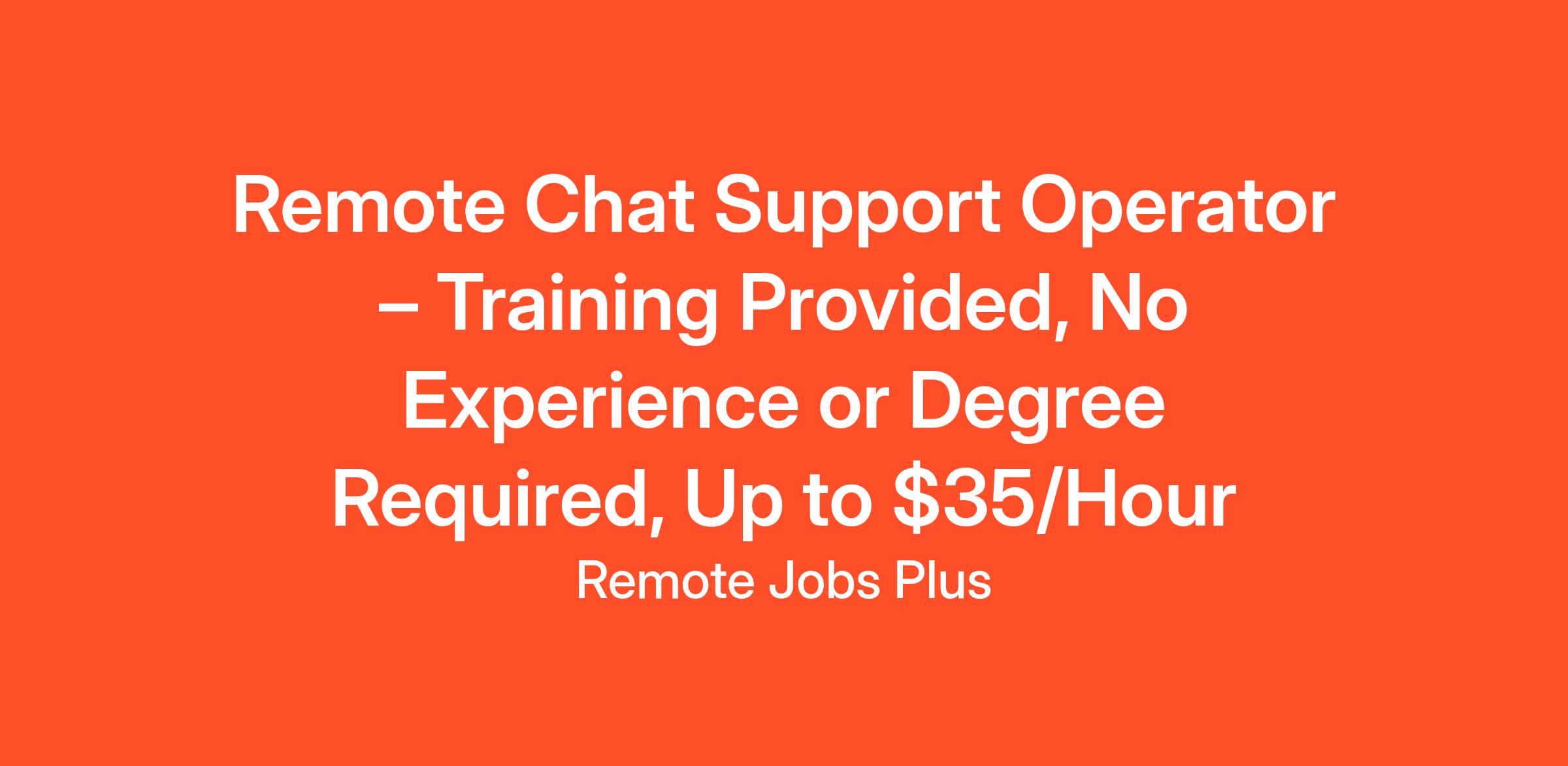 Remote Chat Support Operator – Training Provided, No Experience or Degree Required, Up to $35/Hour