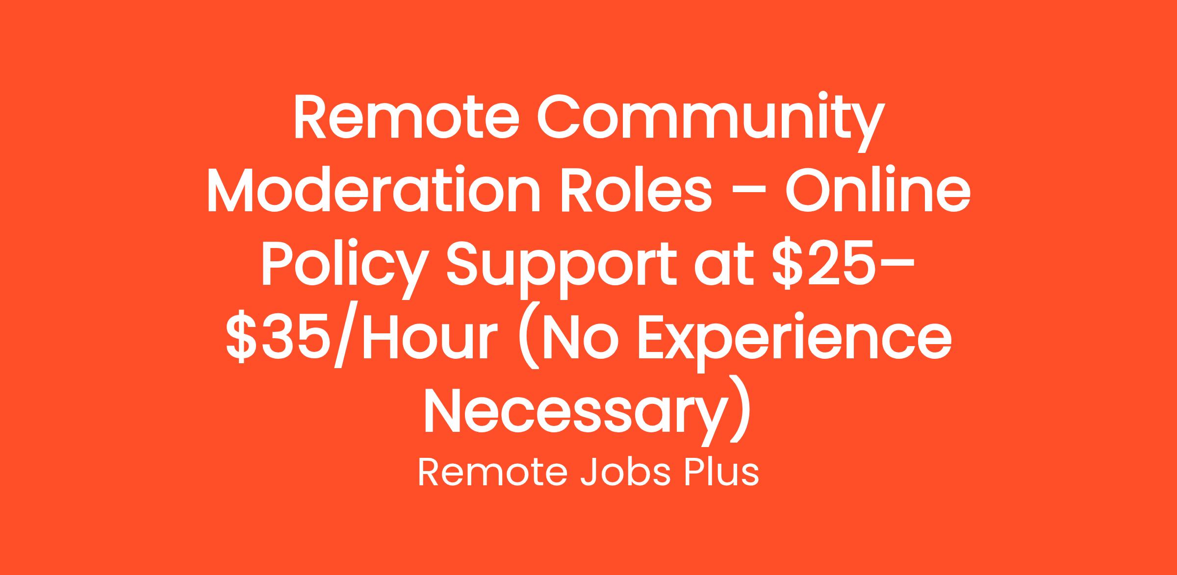Remote Community Moderation Roles – Online Policy Support at $25–$35/Hour (No Experience Necessary)