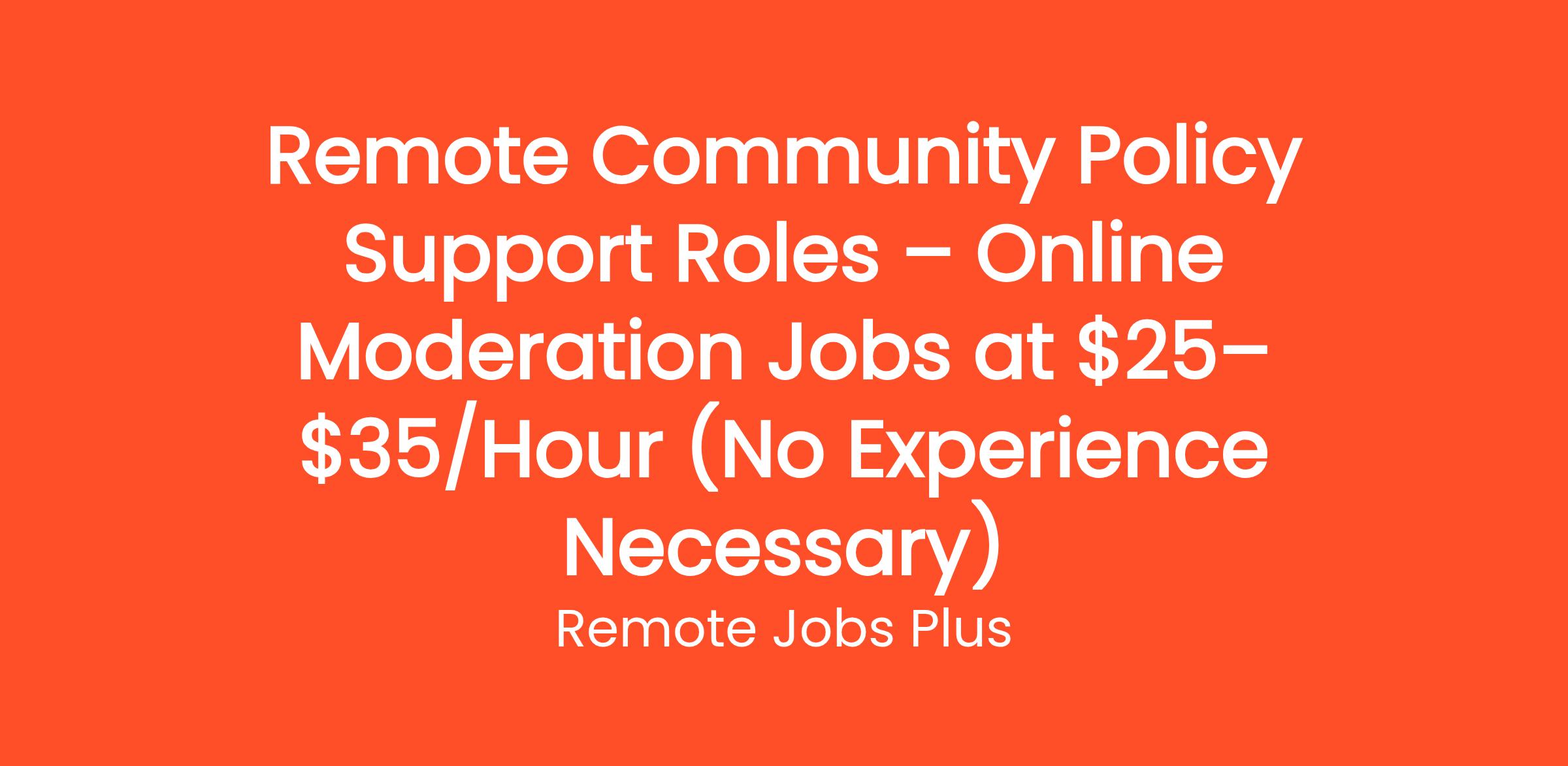Remote Community Policy Support Roles – Online Moderation Jobs at $25–$35/Hour (No Experience Necessary)