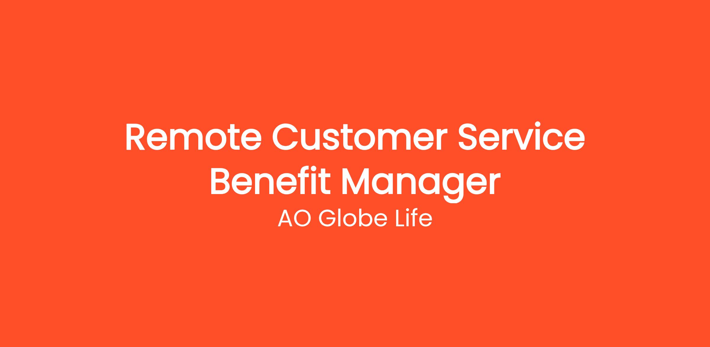 AO Globe Life is hiring Remote Benefit Managers to serve the veteran community. In this role, you will meet virtually with veterans and their families to help them understand and access supplemental benefit programs tailored to their needs. All appointments are pre-scheduled with individuals who have requested information—there is no cold calling involved.