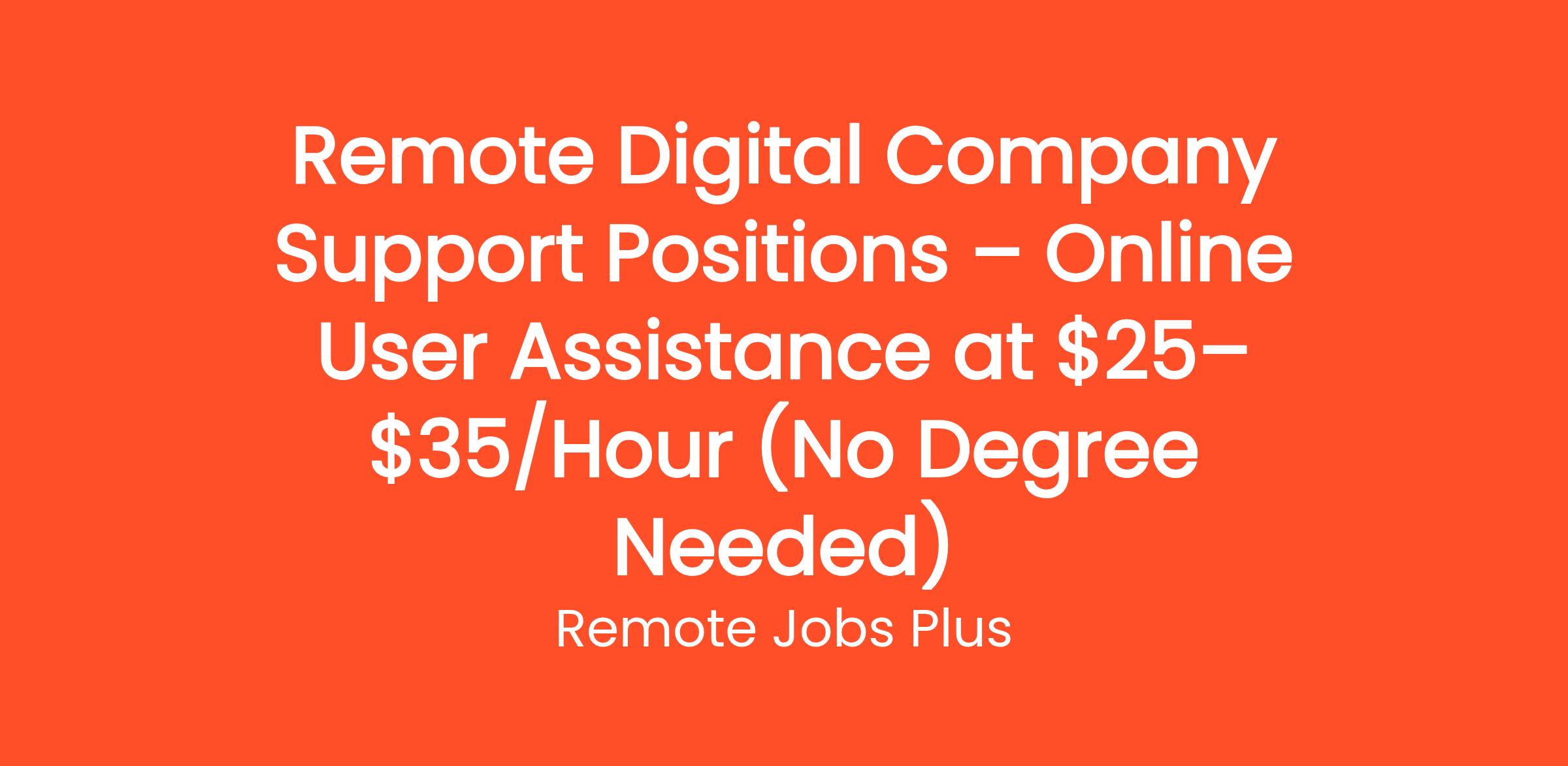Remote Digital Company Support Positions – Online User Assistance at $25–$35/Hour (No Degree Needed)