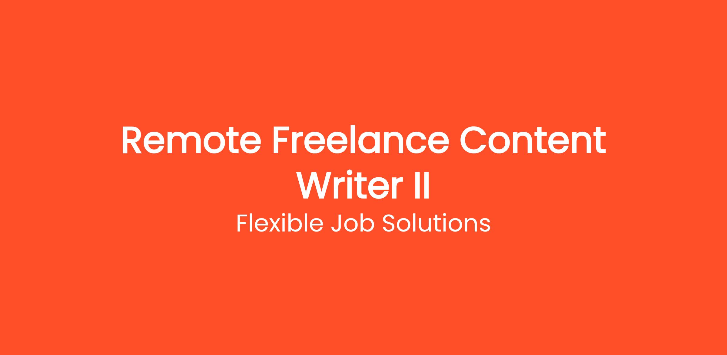 Thousands of people are already working from home as a Remote Freelance Content Writer II with Flexible Job Solutions. Earn money writing articles, blogs, and product descriptions from home. Flexible hours, multiple niches available, weekly pay. This work-from-home opportunity requires no commute, no degree, and no special prior experience. Get started on your own terms — choose your own hours and work as many or as few hours per week as you need. Payouts are processed regularly with multiple withdrawal options so you always get paid on time.