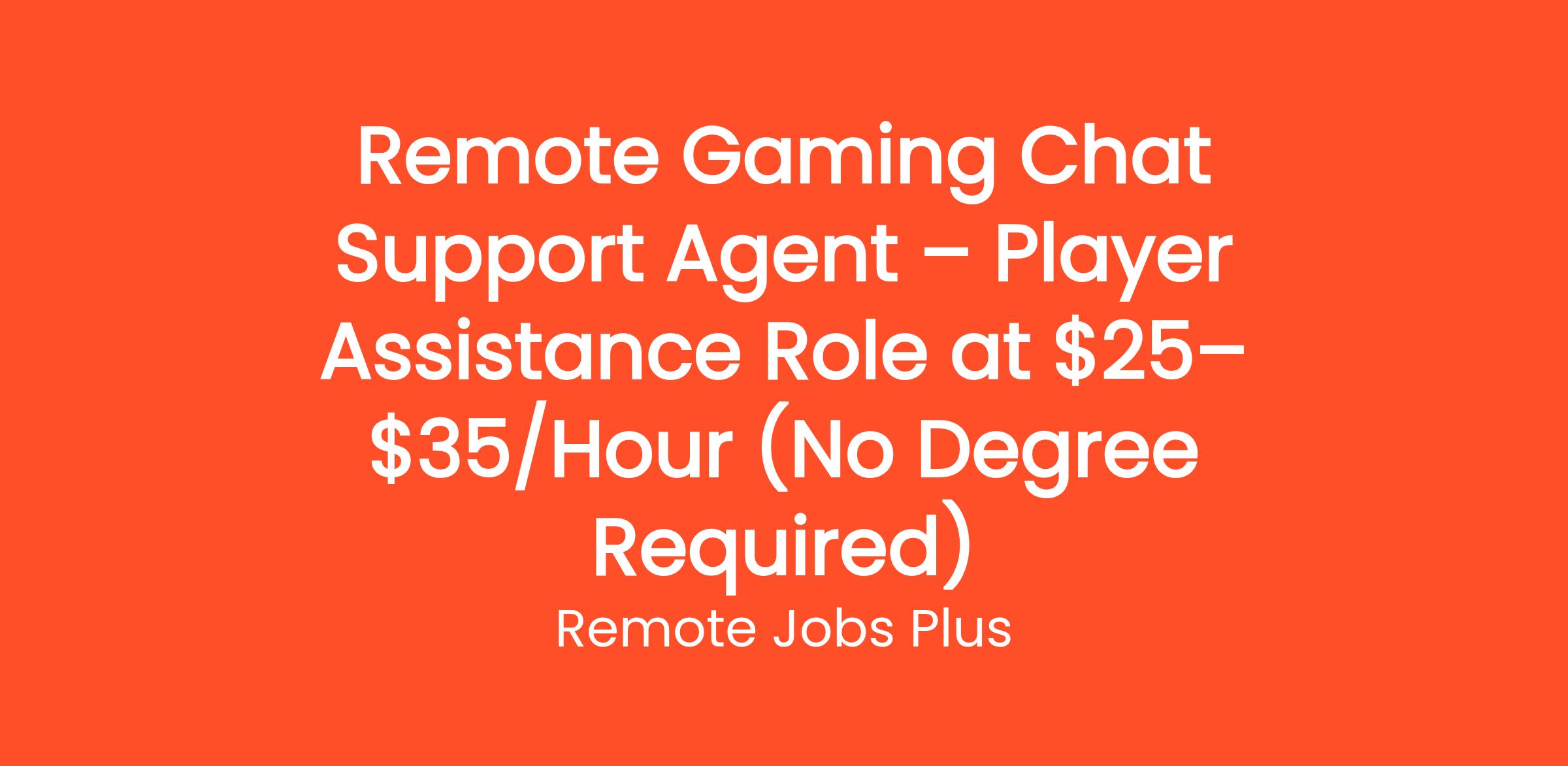 Remote Gaming Chat Support Agent – Player Assistance Role at $25–$35/Hour (No Degree Required)