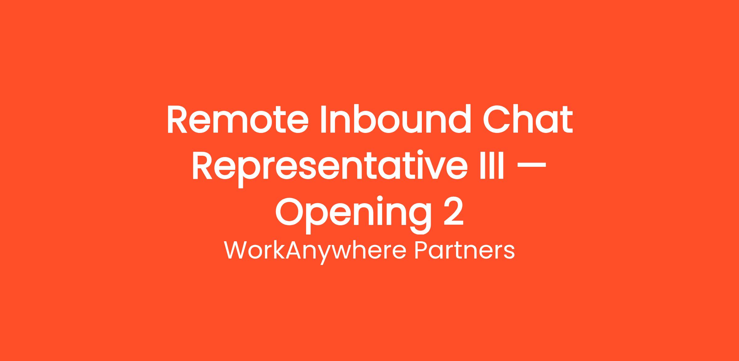 WorkAnywhere Partners is currently looking for motivated individuals to join our team as a Remote Inbound Chat Representative III — Opening 2. Earn money answering live chat messages on websites — no phone calls, no experience needed, and 100% work from home. This is a fully remote, work-from-home position that can be done from anywhere in the United States. No prior experience is required — just a reliable internet connection and the motivation to learn. Whether you're looking to replace your current income or simply earn extra cash on the side, this flexible opportunity allows you to work as much or as little as you want.