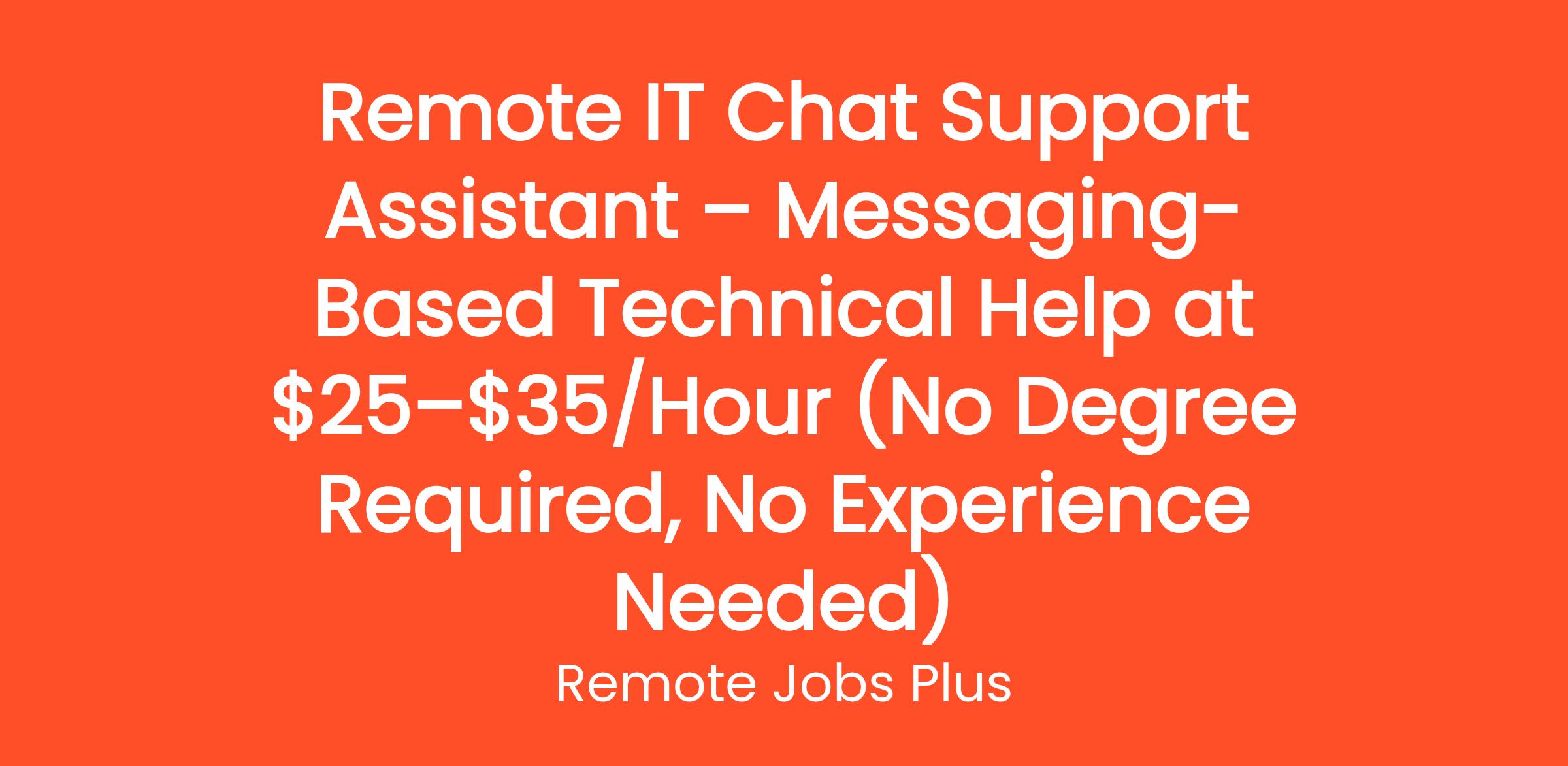 Remote IT Chat Support Assistant – Messaging-Based Technical Help at $25–$35/Hour (No Degree Required, No Experience Needed)