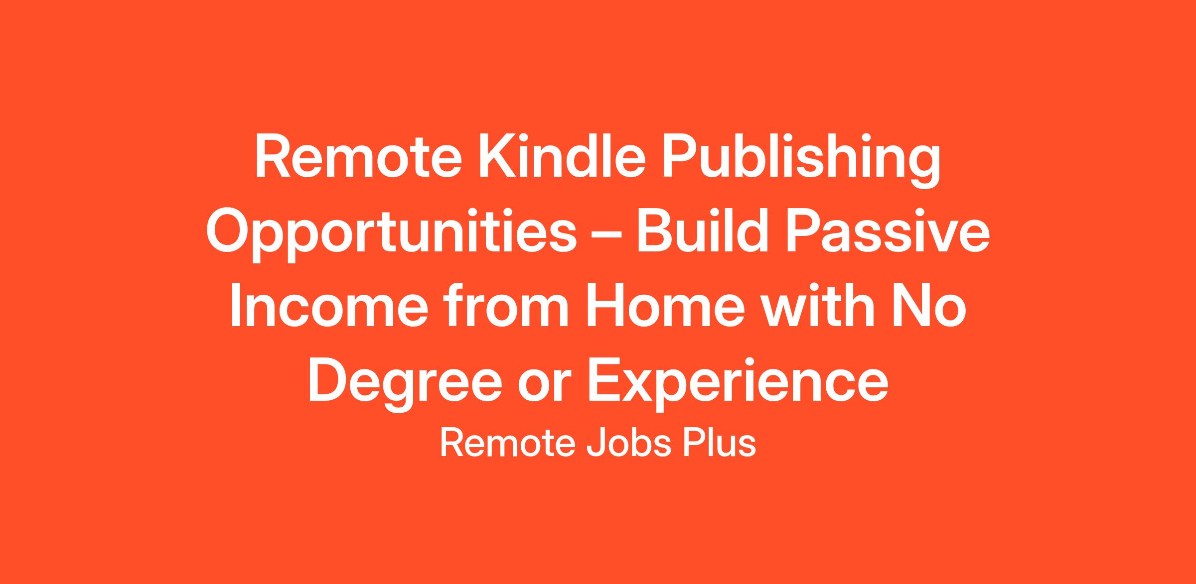 Remote Kindle Publishing Opportunities – Build Passive Income from Home with No Degree or Experience