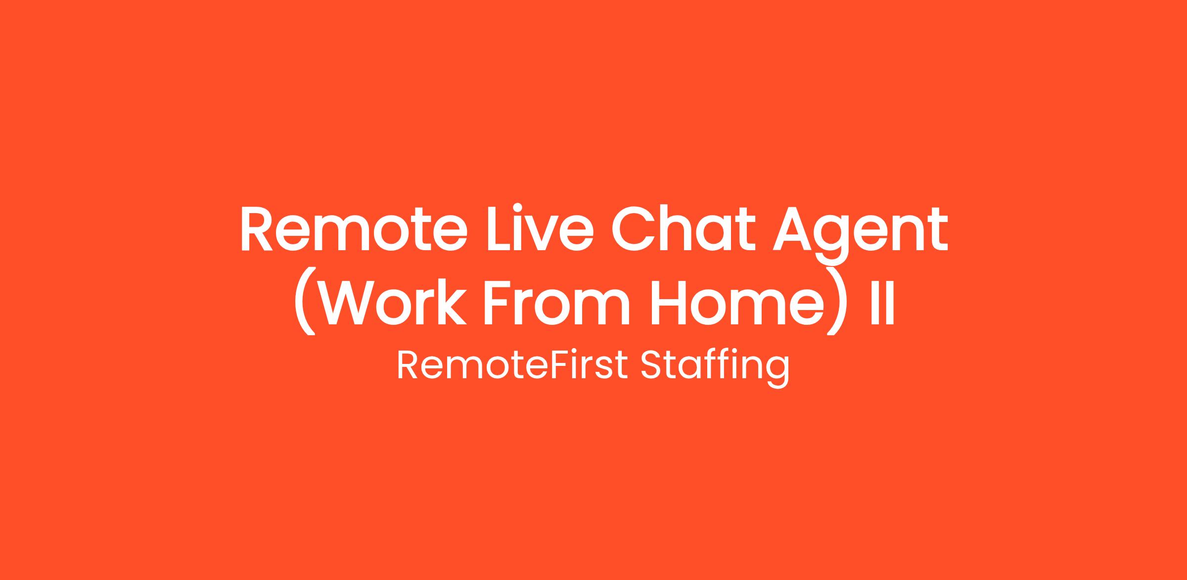 Thousands of people are already working from home as a Remote Live Chat Agent (Work From Home) II with RemoteFirst Staffing. Earn money answering live chat messages on websites — no phone calls, no experience needed, and 100% work from home. This work-from-home opportunity requires no commute, no degree, and no special prior experience. Get started on your own terms — choose your own hours and work as many or as few hours per week as you need. Payouts are processed regularly with multiple withdrawal options so you always get paid on time.