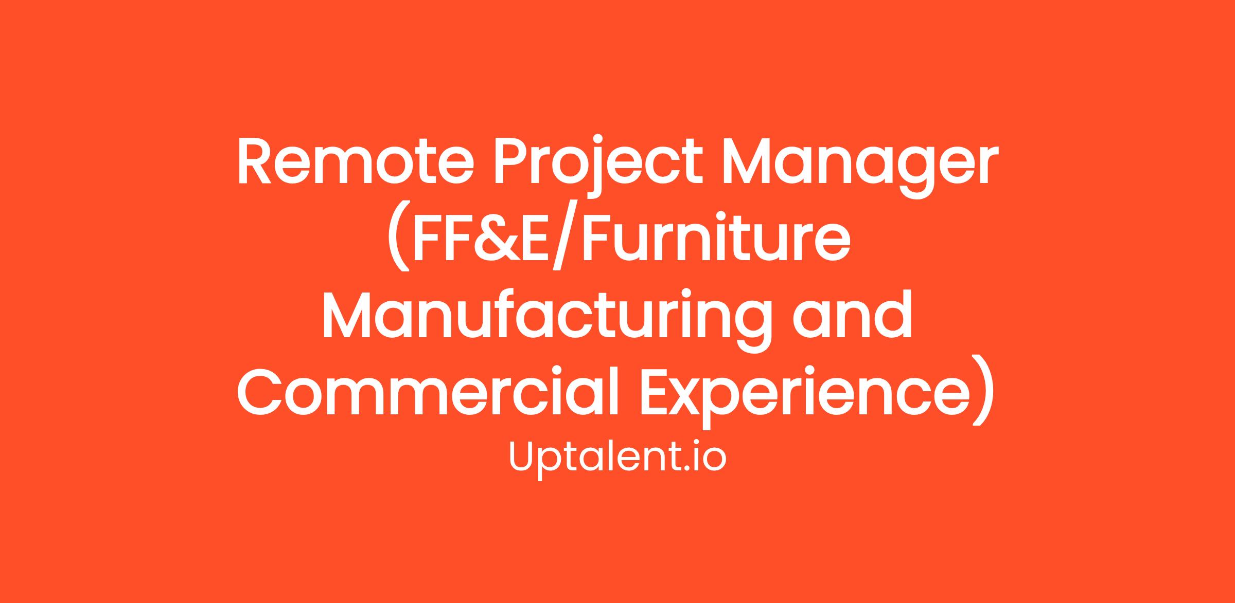 Uptalent.io is looking for a Remote Project Manager with specialized experience in FF&E (Furniture, Fixtures, and Equipment) and commercial projects to join our dynamic team. In this role, you will be responsible for overseeing the successful execution of projects from inception to completion, ensuring that all project objectives are met on time and within budget.