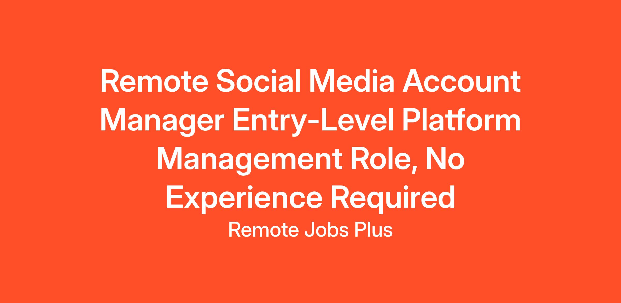 Remote Social Media Account Manager Entry-Level Platform Management Role, No Experience Required