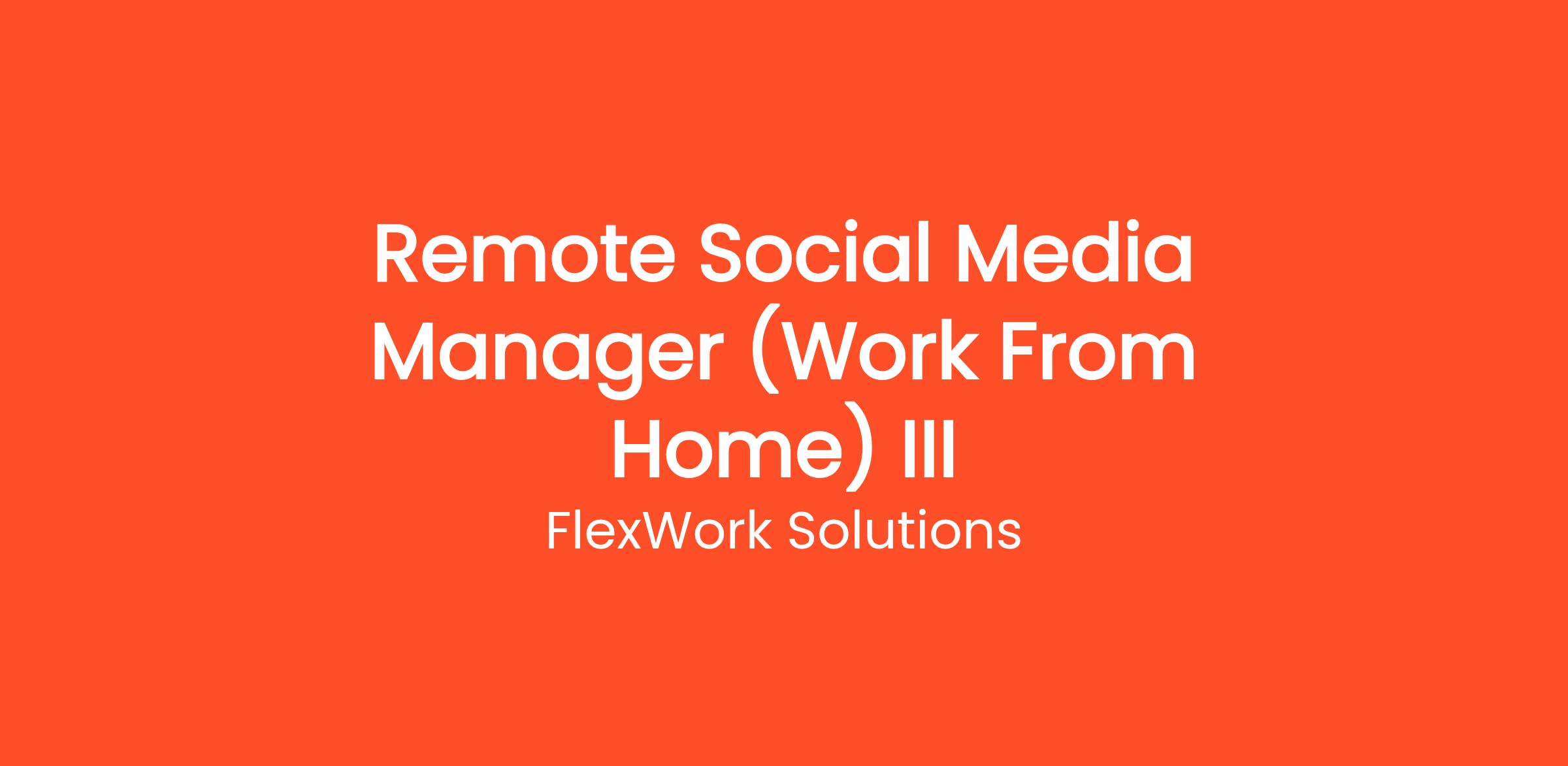 FlexWork Solutions is currently looking for motivated individuals to join our team as a Remote Social Media Manager (Work From Home) III. Get paid to manage social media accounts from home. Work with brands on Instagram, TikTok, Facebook, and more — no degree required. This is a fully remote, work-from-home position that can be done from anywhere in the United States. No prior experience is required — just a reliable internet connection and the motivation to learn. Whether you're looking to replace your current income or simply earn extra cash on the side, this flexible opportunity allows you to work as much or as little as you want.