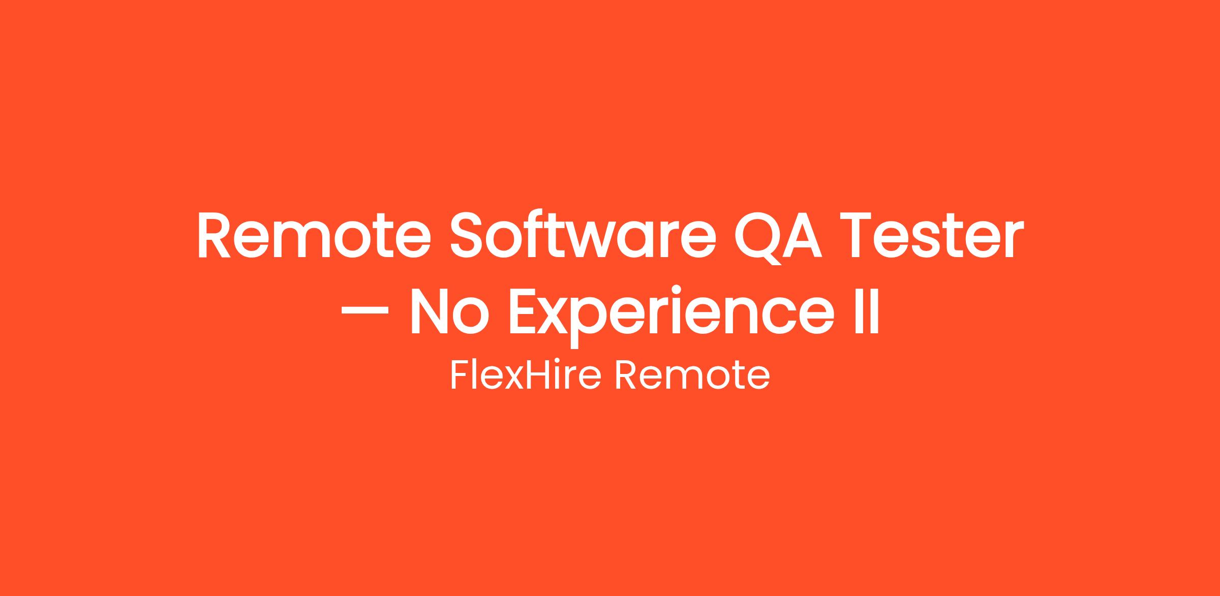 FlexHire Remote is currently looking for motivated individuals to join our team as a Remote Software QA Tester — No Experience II. Get paid to test websites and mobile apps from home and give your honest feedback. No tech experience required. This is a fully remote, work-from-home position that can be done from anywhere in the United States. No prior experience is required — just a reliable internet connection and the motivation to learn. Whether you're looking to replace your current income or simply earn extra cash on the side, this flexible opportunity allows you to work as much or as little as you want.